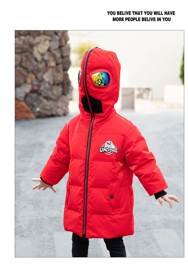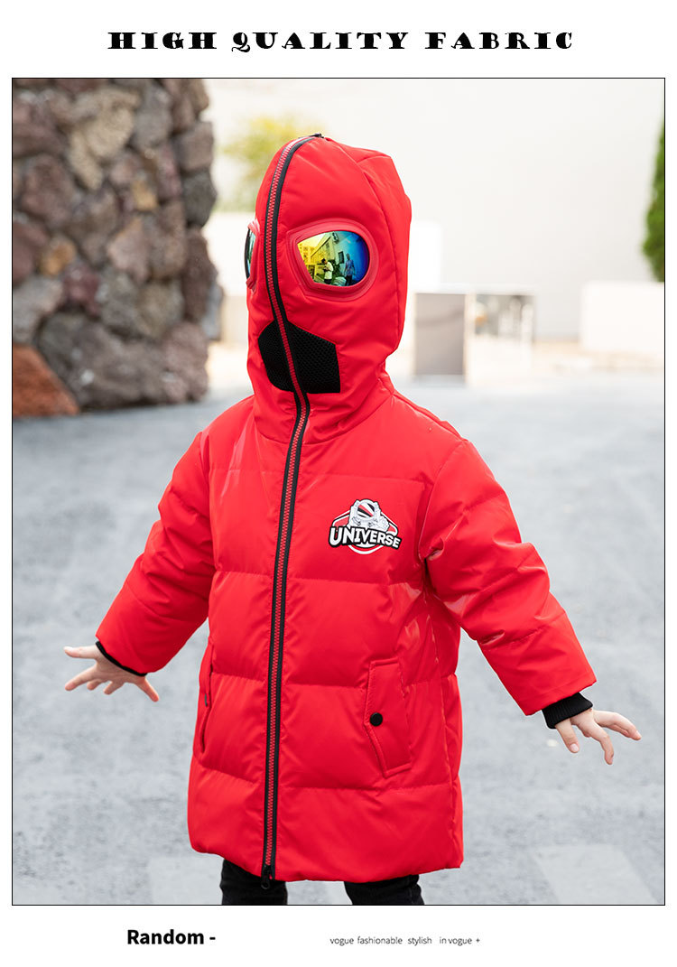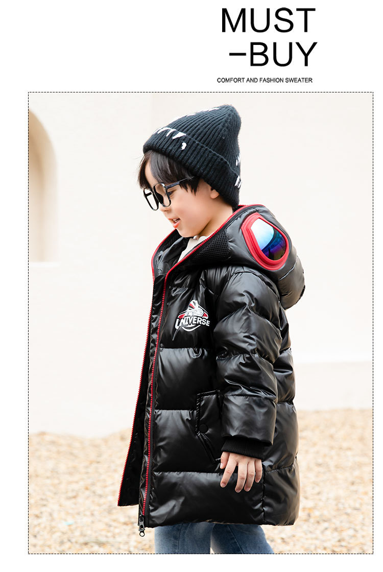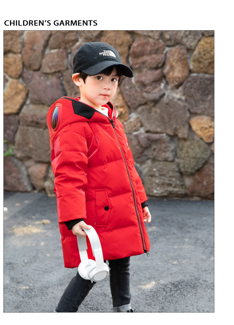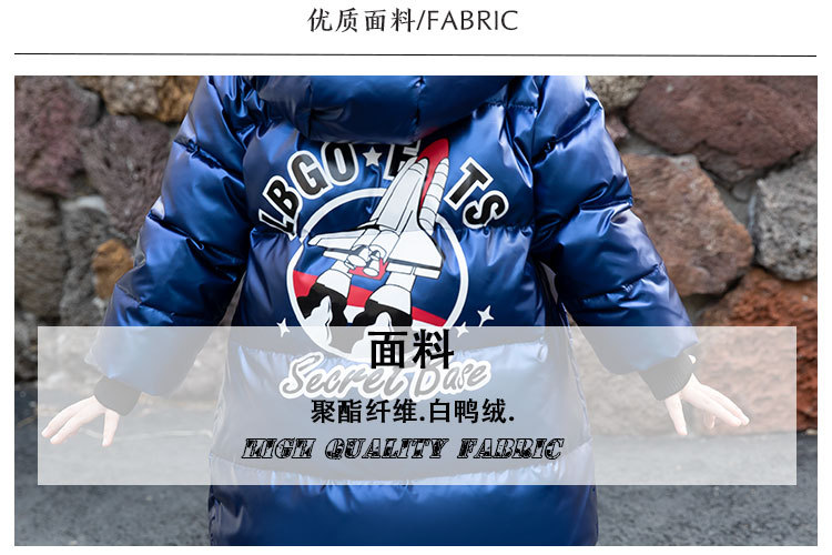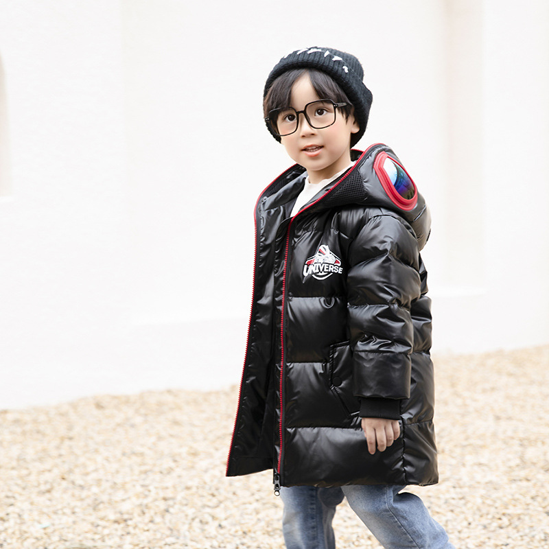 남아용 다운 실크 재킷 중간 길이 2024 새로운 스타일의 어린이 및 중년 어린이 스타일 만화 두꺼운 노워시 겨울 재킷
