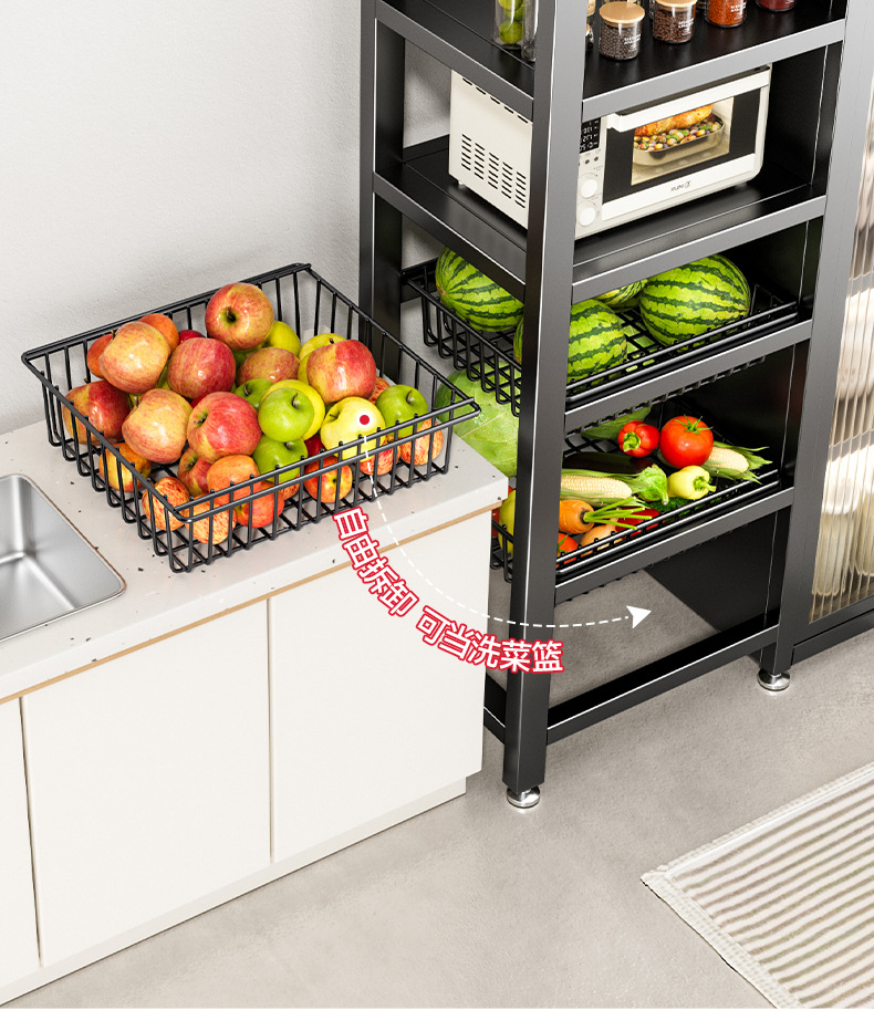 다기능 가정용 주방 보관 캐비닛 야채 바구니 보관 랙 도어가있는 다층 바닥 보관 랙스토어 가기