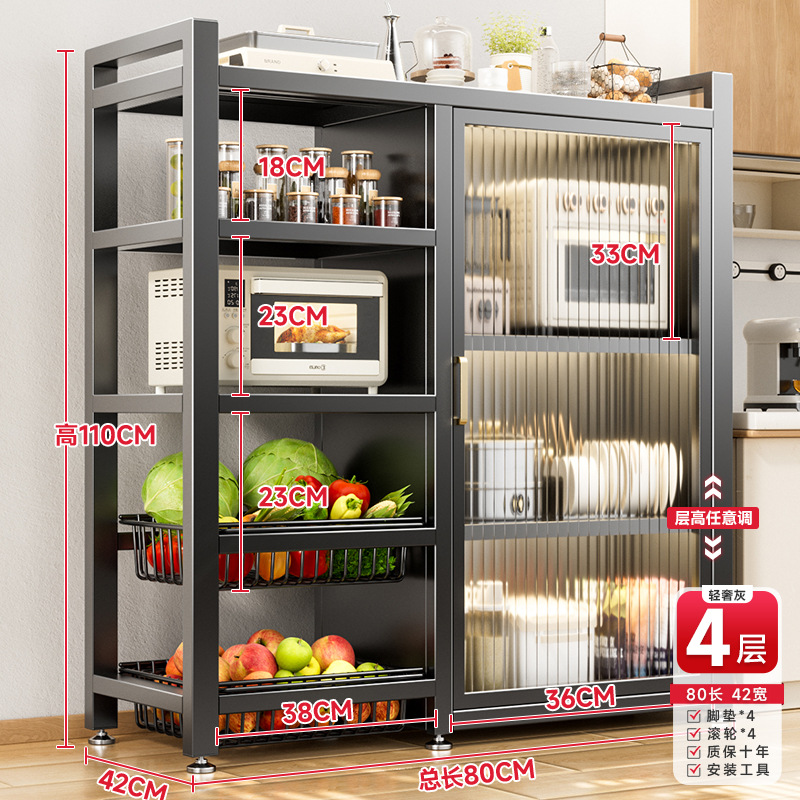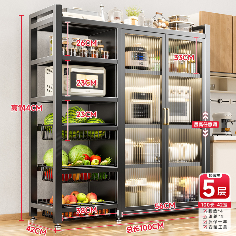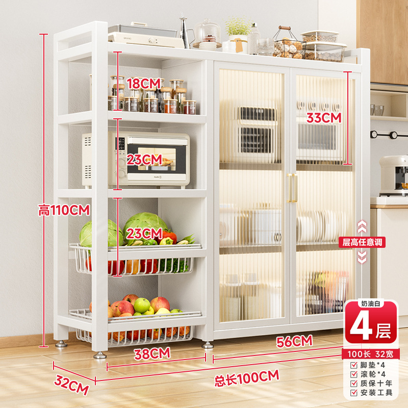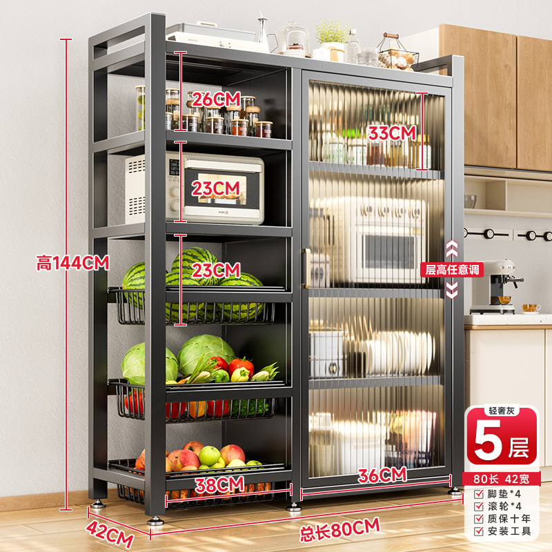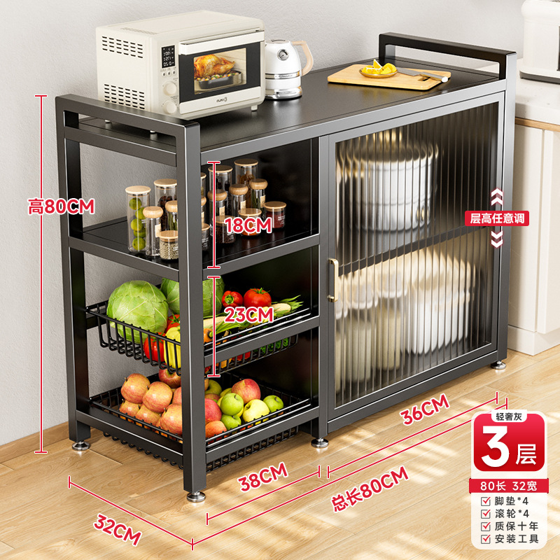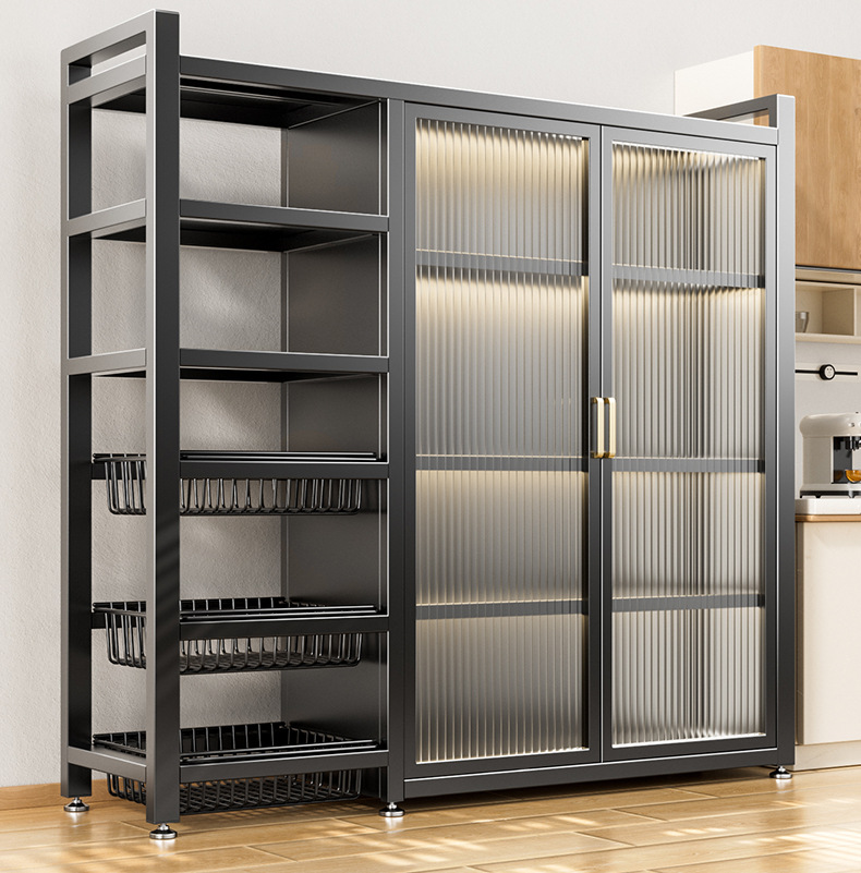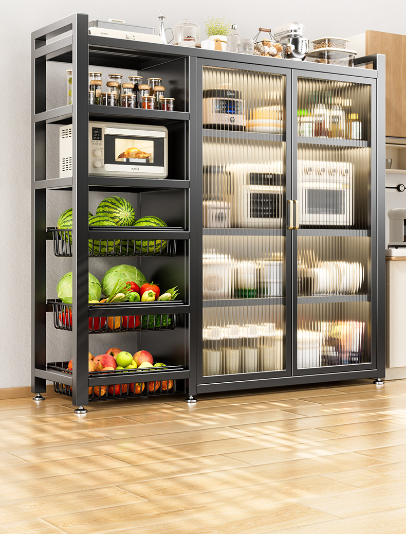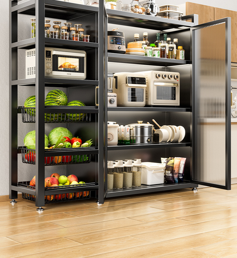 다기능 가정용 주방 보관 캐비닛 야채 바구니 보관 랙 도어가있는 다층 바닥 보관 랙