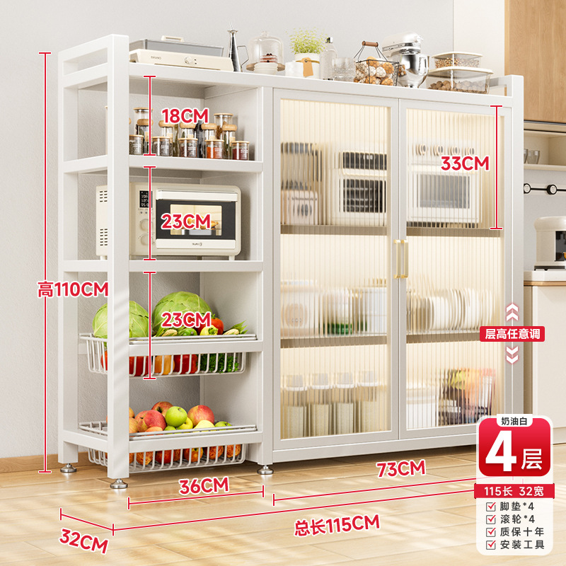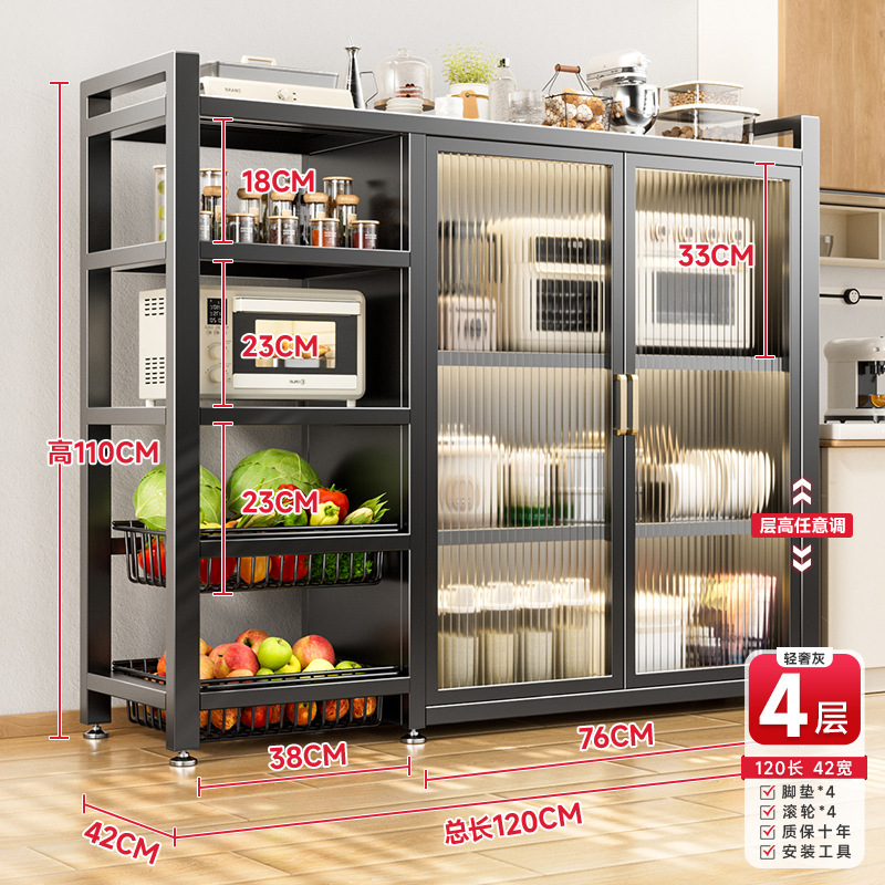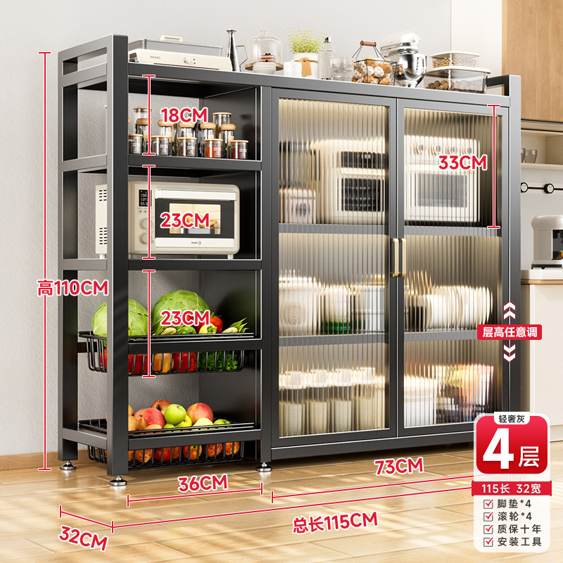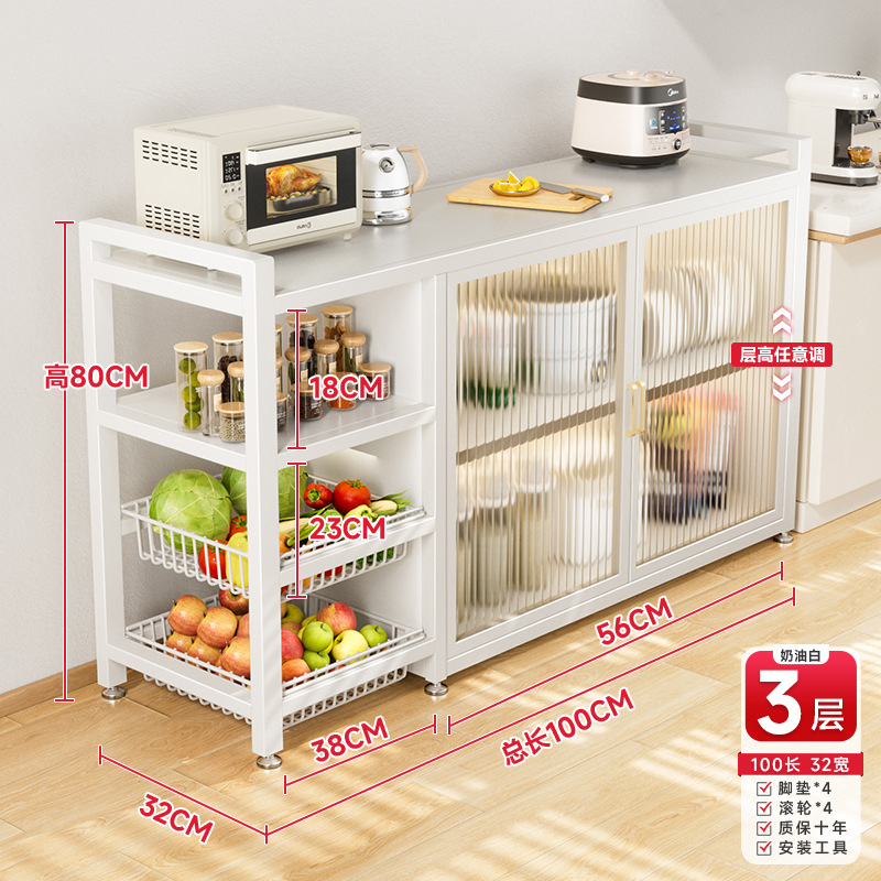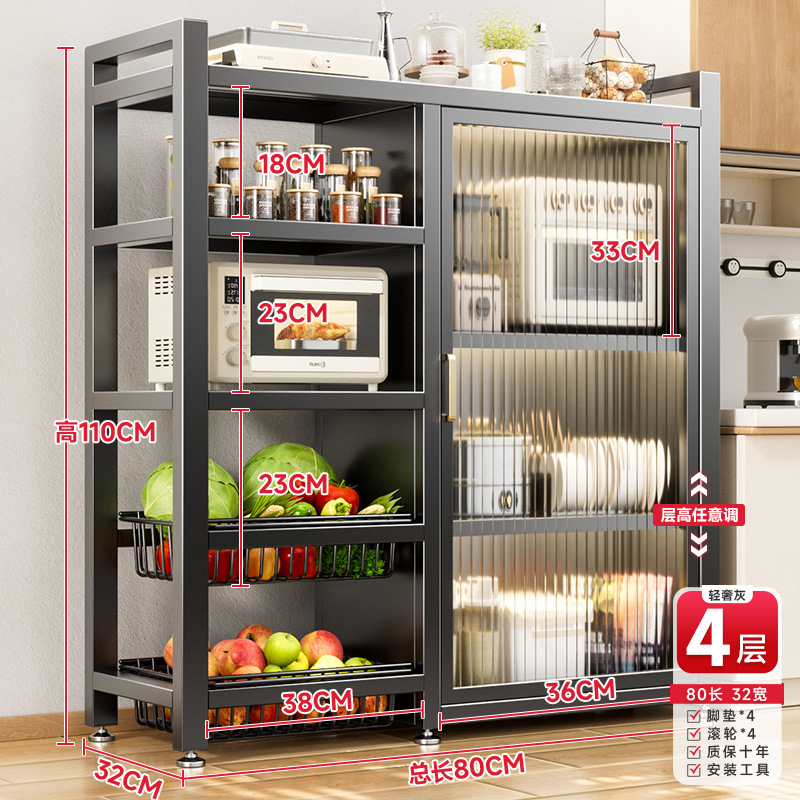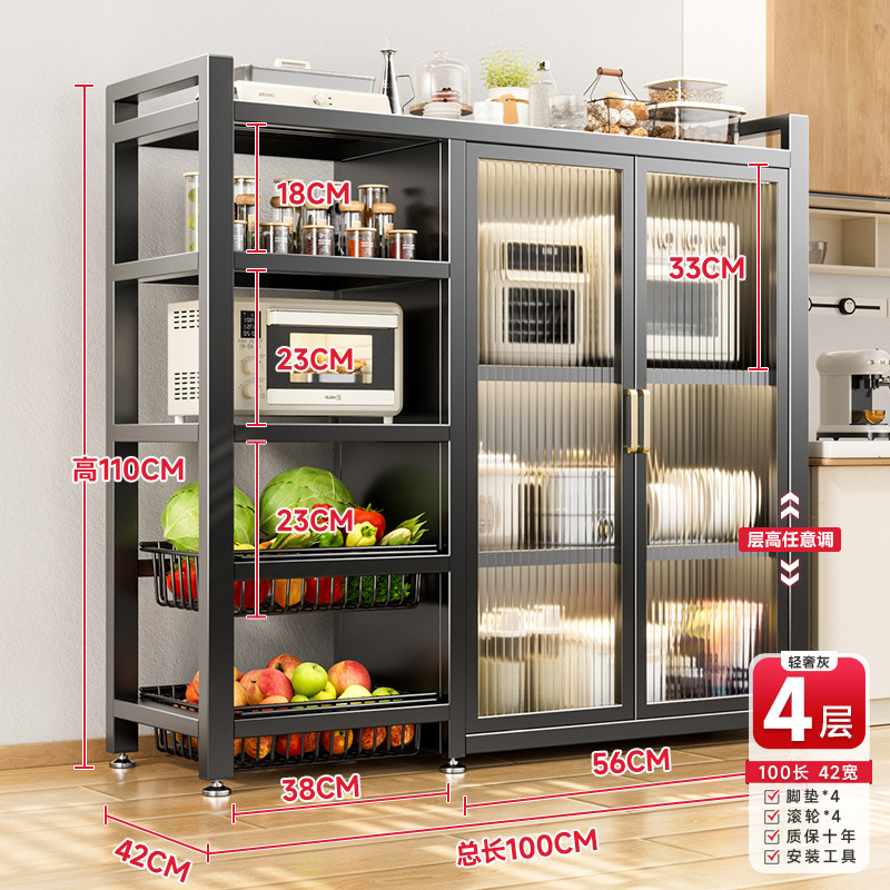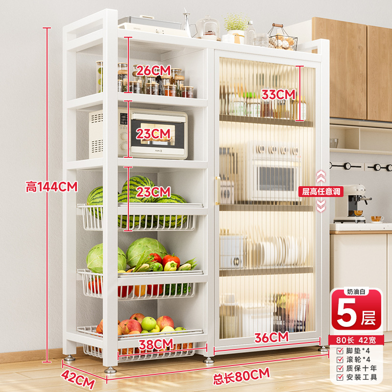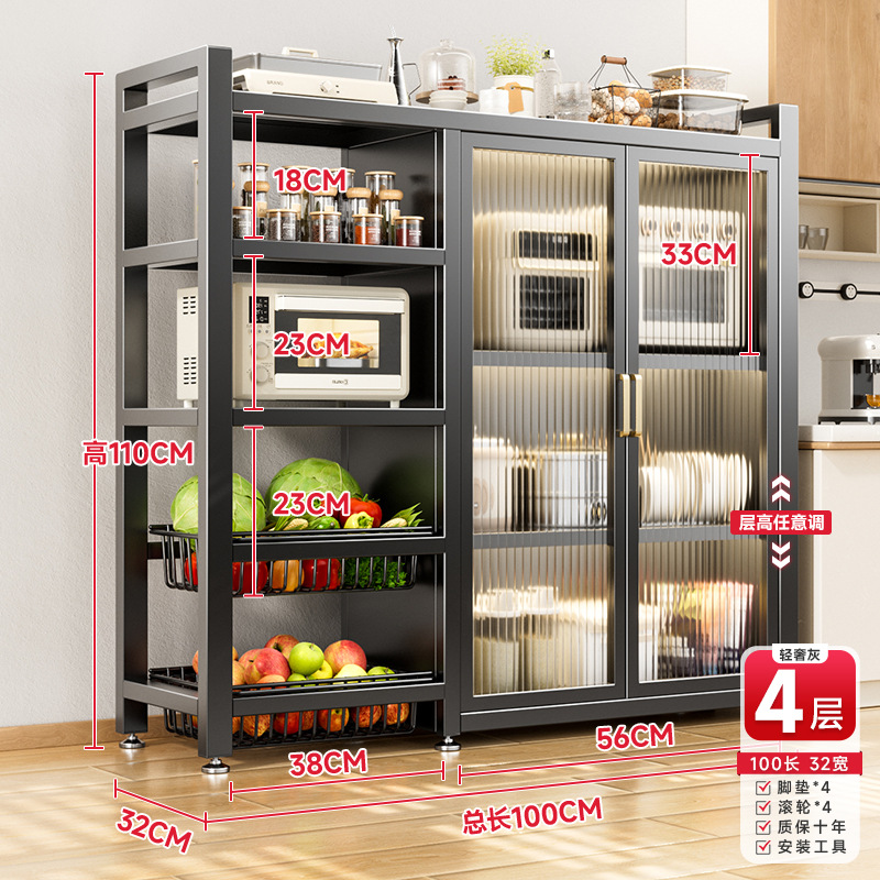 다기능 가정용 주방 보관 캐비닛 야채 바구니 보관 랙 도어가있는 다층 바닥 보관 랙