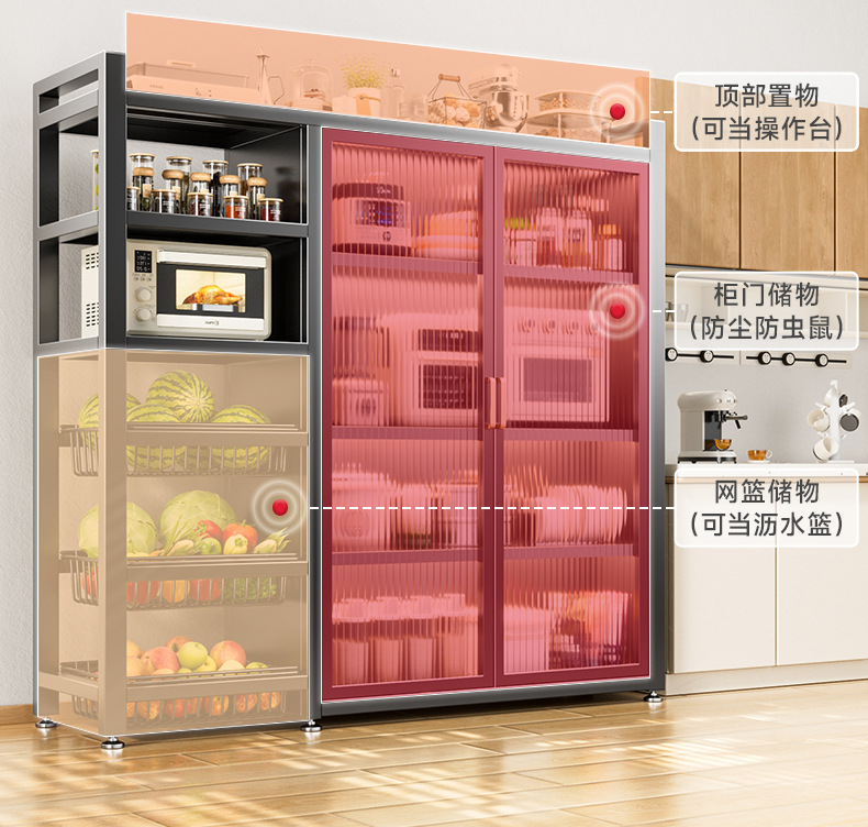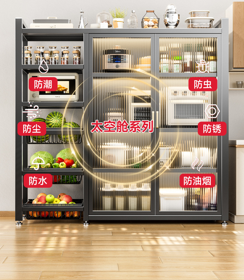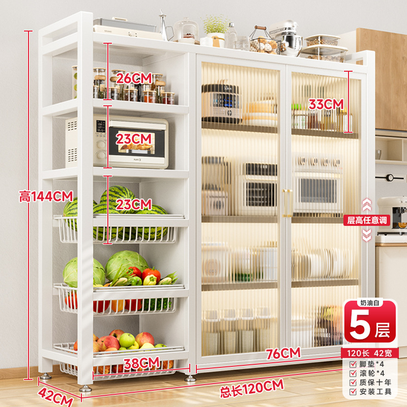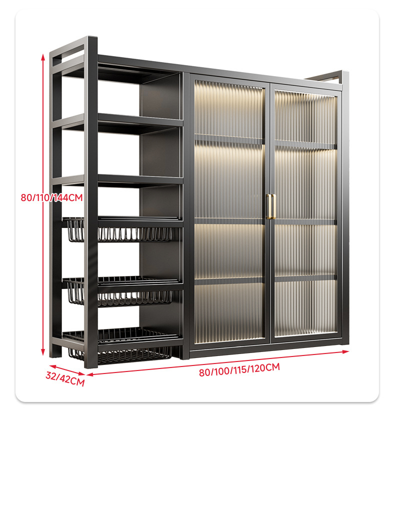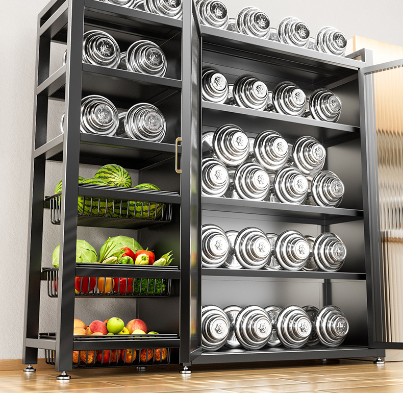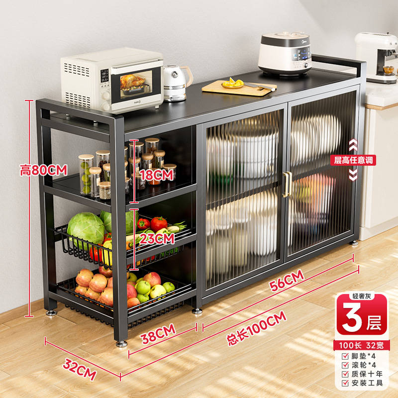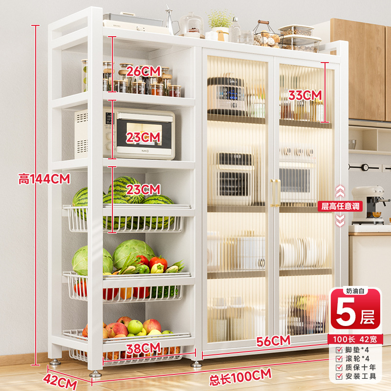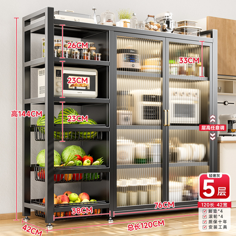 다기능 가정용 주방 보관 캐비닛 야채 바구니 보관 랙 도어가있는 다층 바닥 보관 랙
