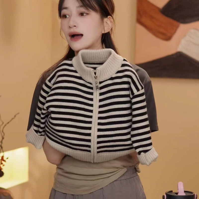 어린이용 신상 니트 2025 가을 아동용 스트라이프 스웨터 남아용 루즈핏 스타일리쉬 만능 캐주얼 자켓 트렌디