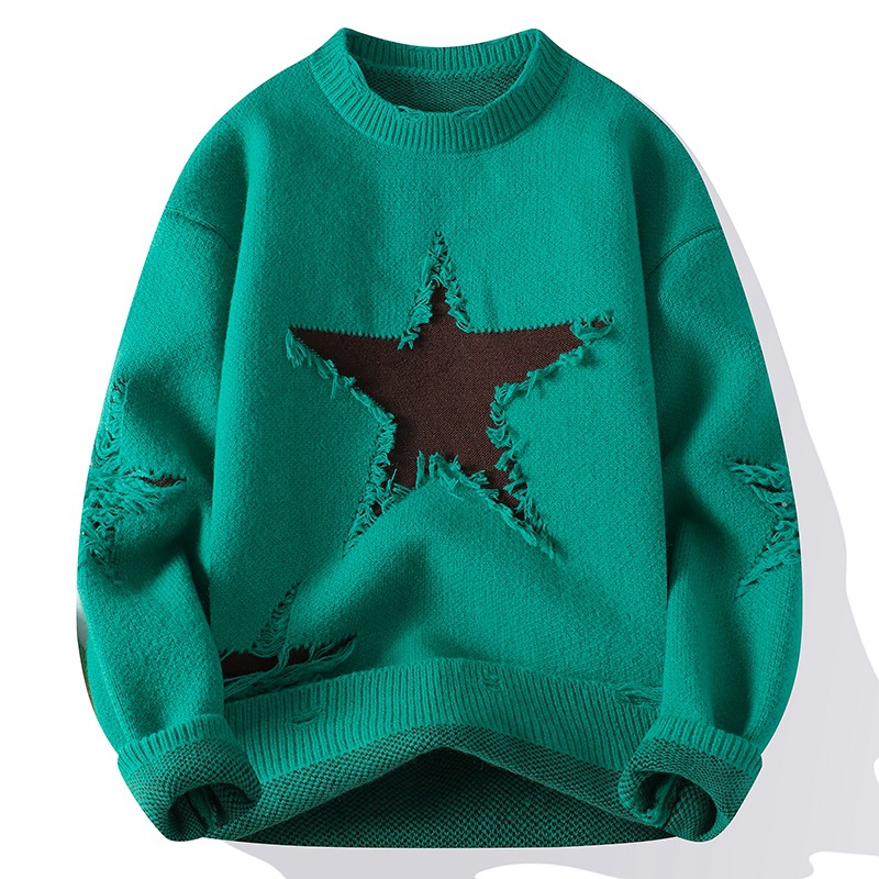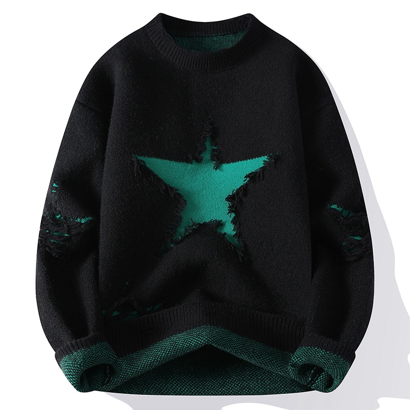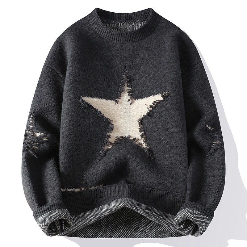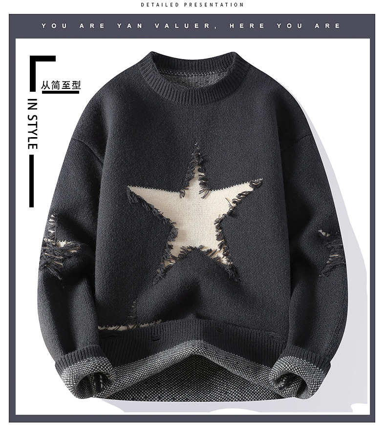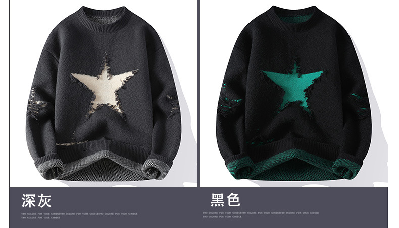새로운 청소년 확장 느슨한 풀오버 스웨터 남성 니트웨어 기모 두꺼운 라운드 넥 스타 니트웨어