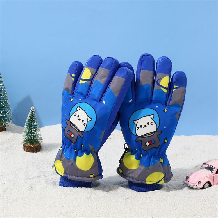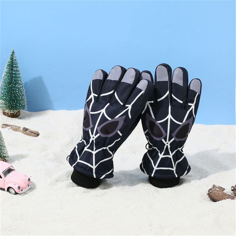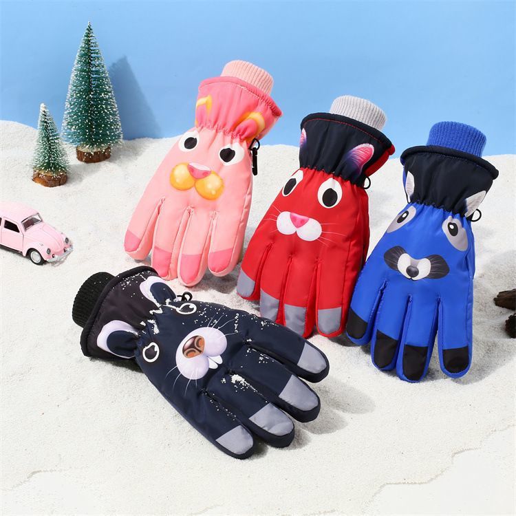 어린이용 스키 장갑, 방풍 및 보온 기능이 있는 만화 캐릭터 손목 보호대, 남학생과 여학생을 위한 면 장갑, 어린이용 방한용 장갑, 눈 속에서 놀기 위한 장갑