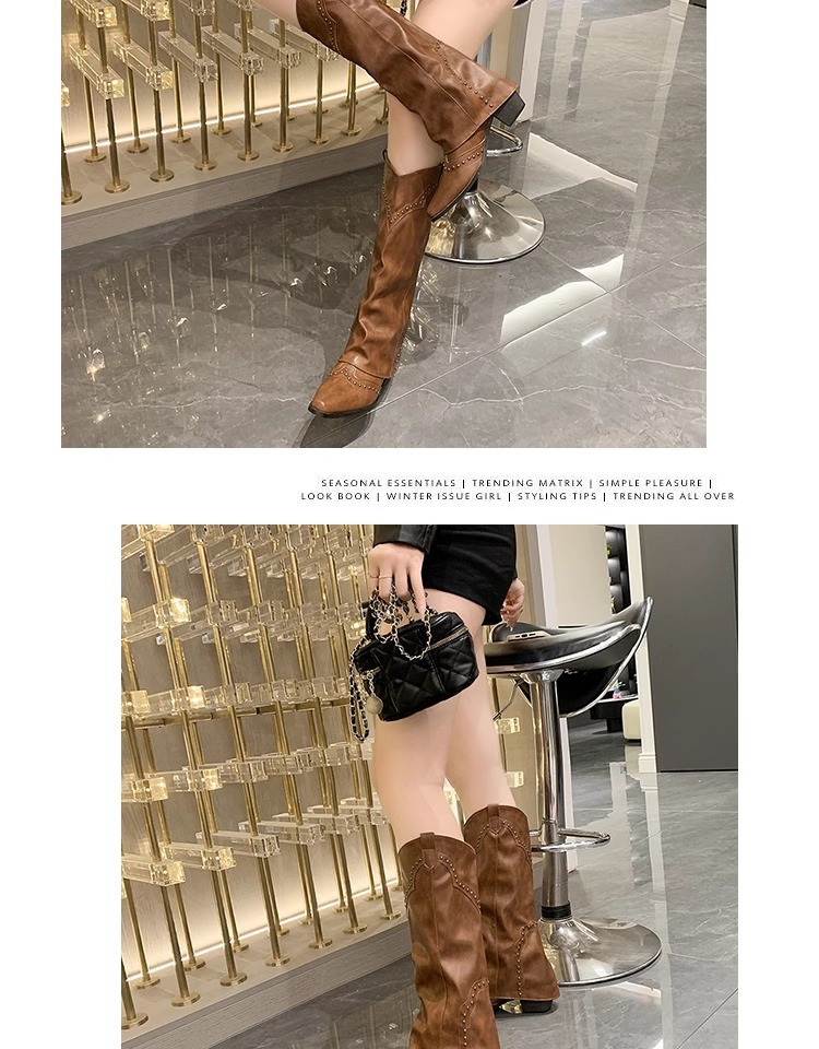 빈티지 스터드 하이 팬트 부츠 프랑스 여성 부츠 올 매치 웨스턴 카우보이 부츠 나이트 부츠 작은 부츠스토어 가기