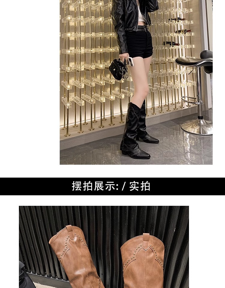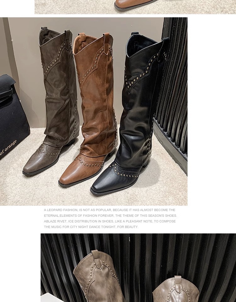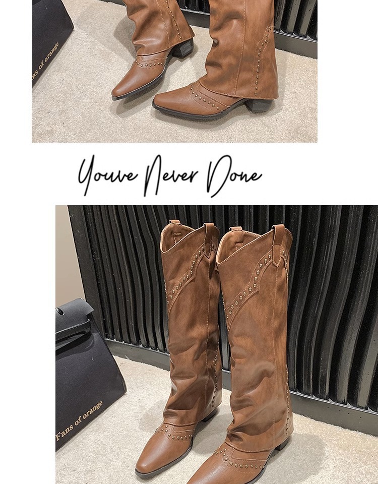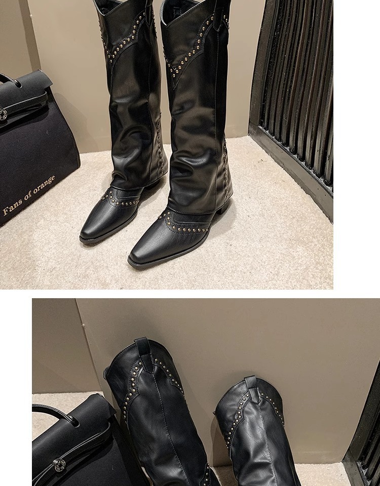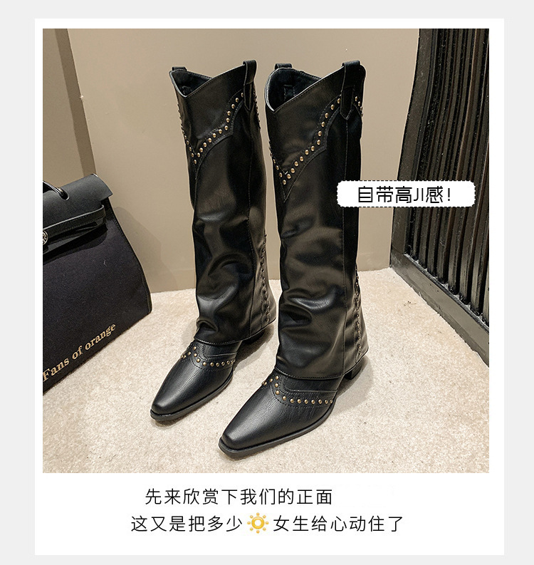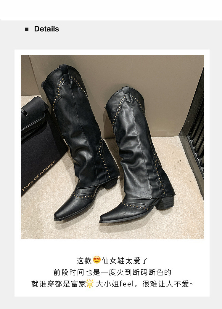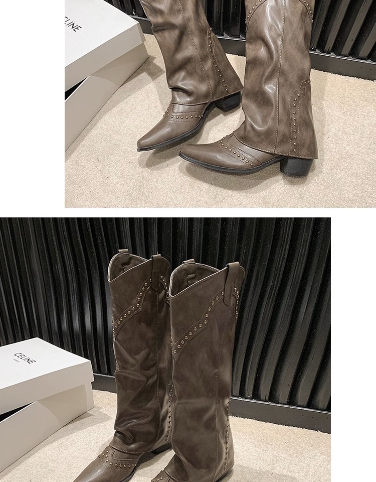 빈티지 스터드 하이 팬트 부츠 프랑스 여성 부츠 올 매치 웨스턴 카우보이 부츠 나이트 부츠 작은 부츠