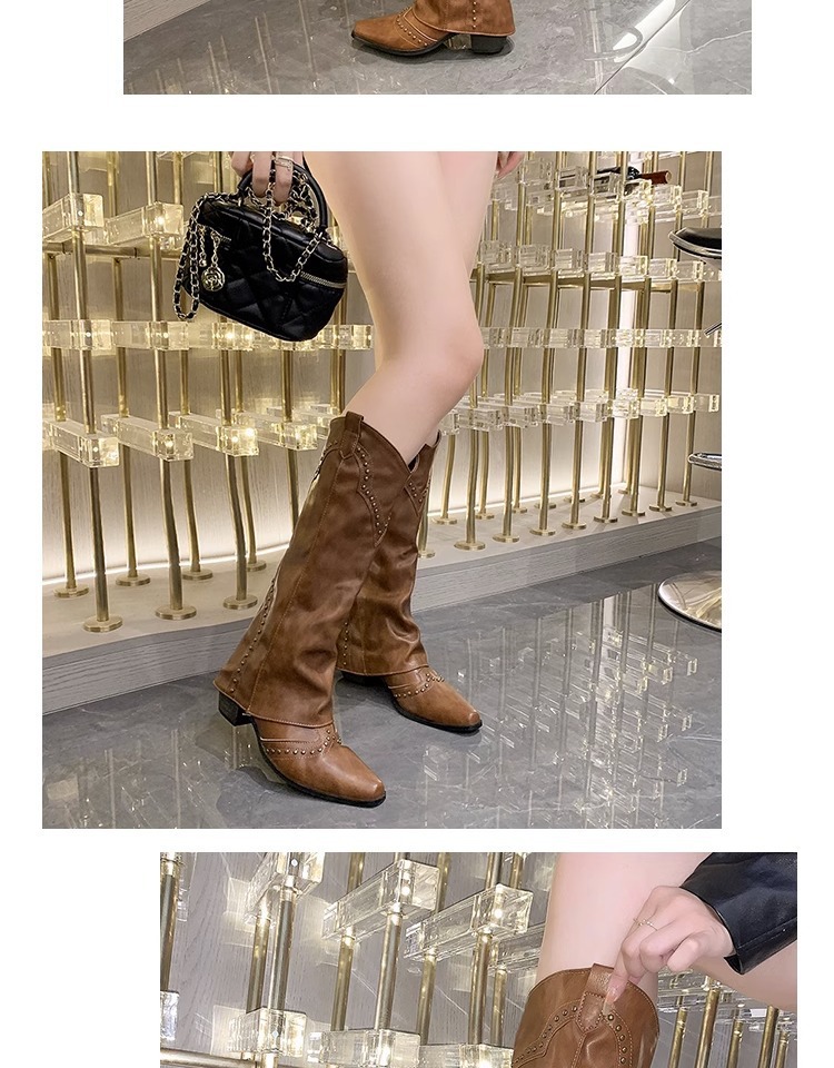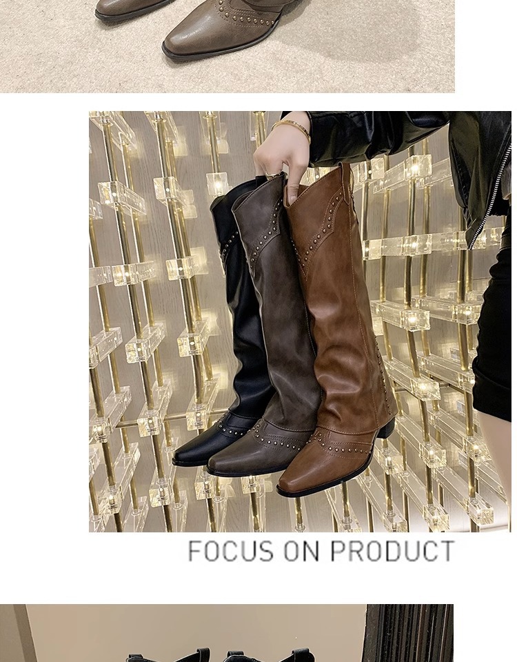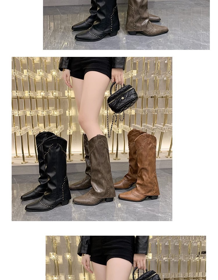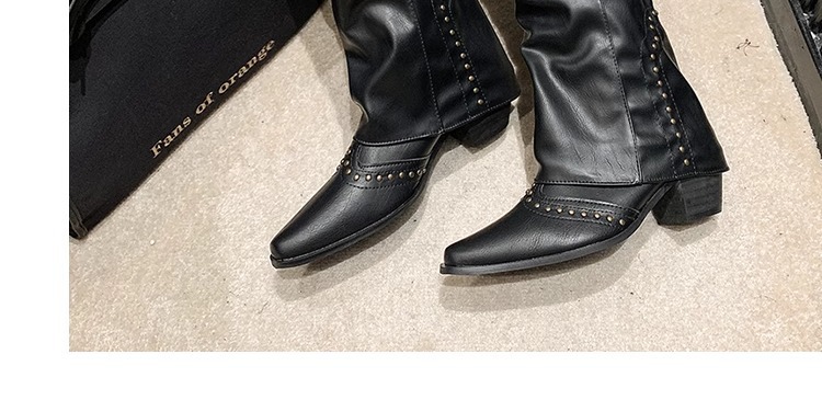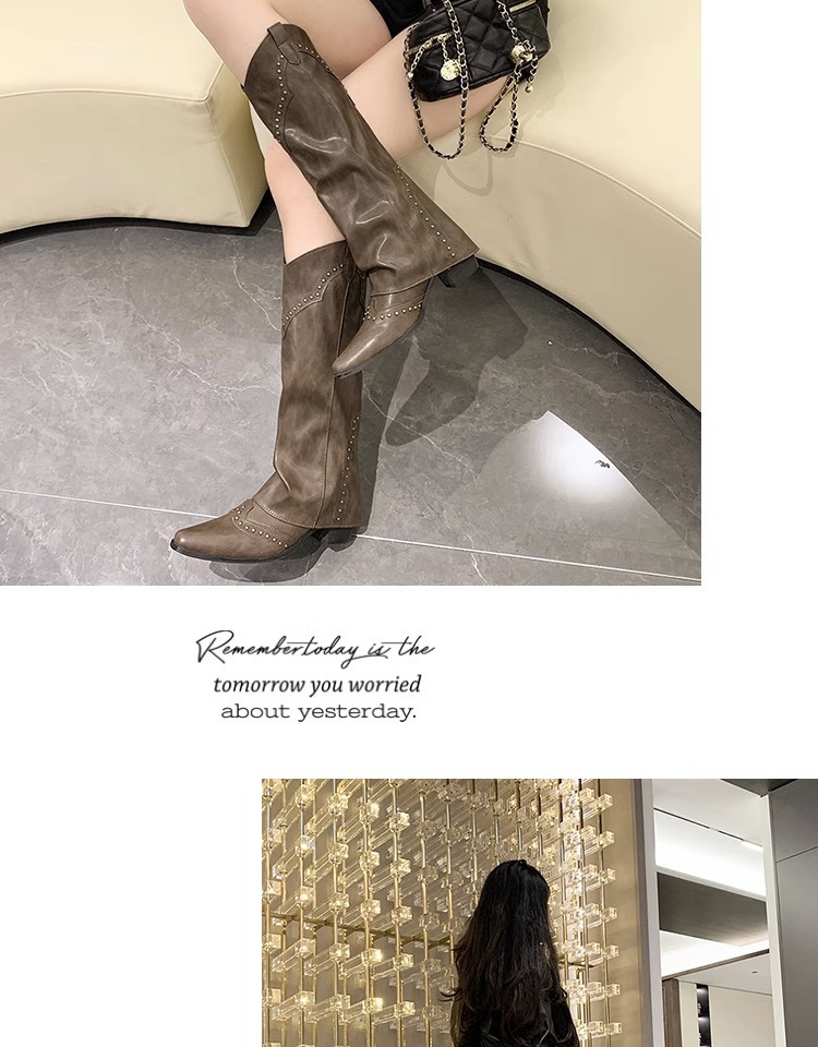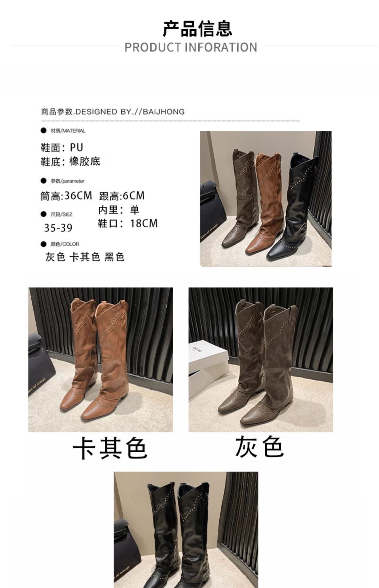 빈티지 스터드 하이 팬트 부츠 프랑스 여성 부츠 올 매치 웨스턴 카우보이 부츠 나이트 부츠 작은 부츠