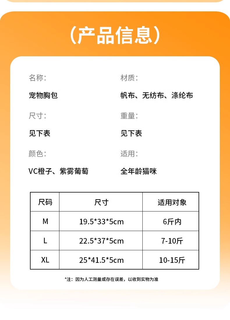 • 고양이 가슴 가방 네발 달린 애완동물 가방 [VC 오렌지]