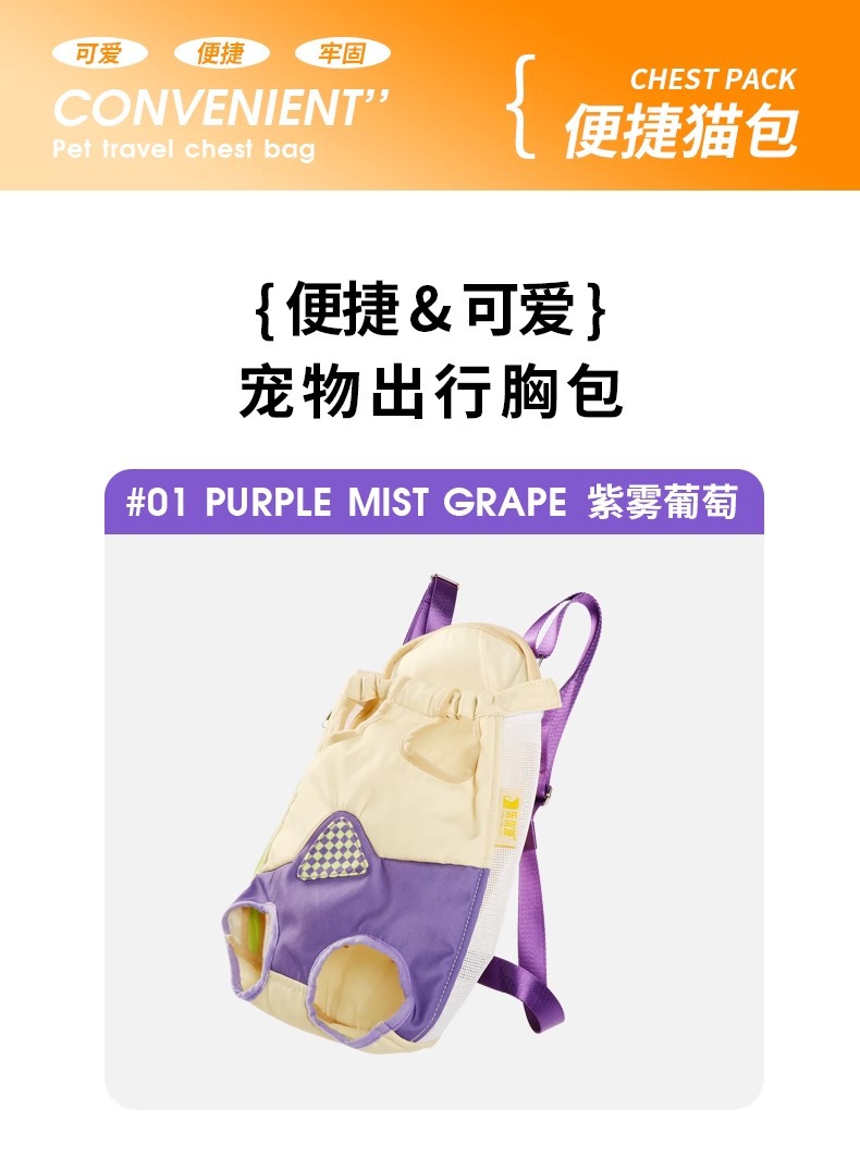 • 고양이 가슴 가방 네발 달린 애완동물 가방 [보라색 안개 포도]