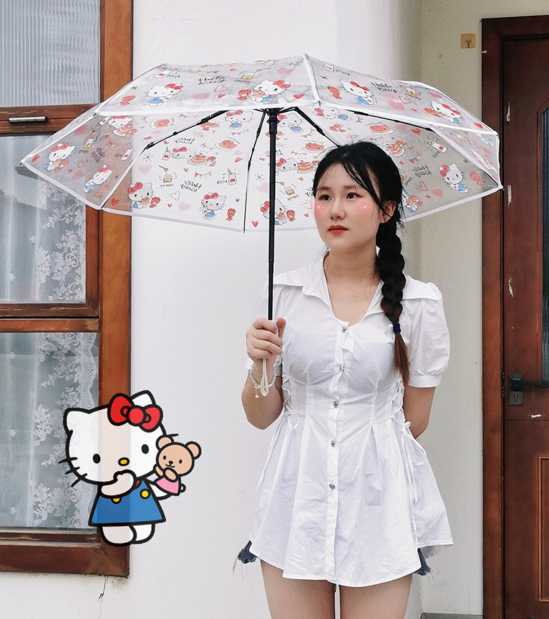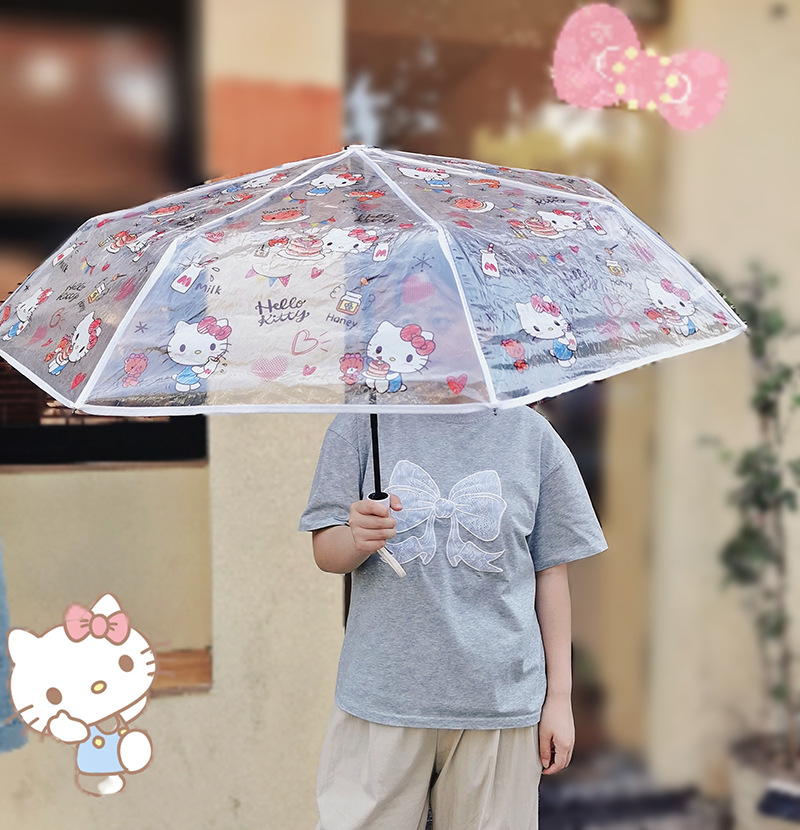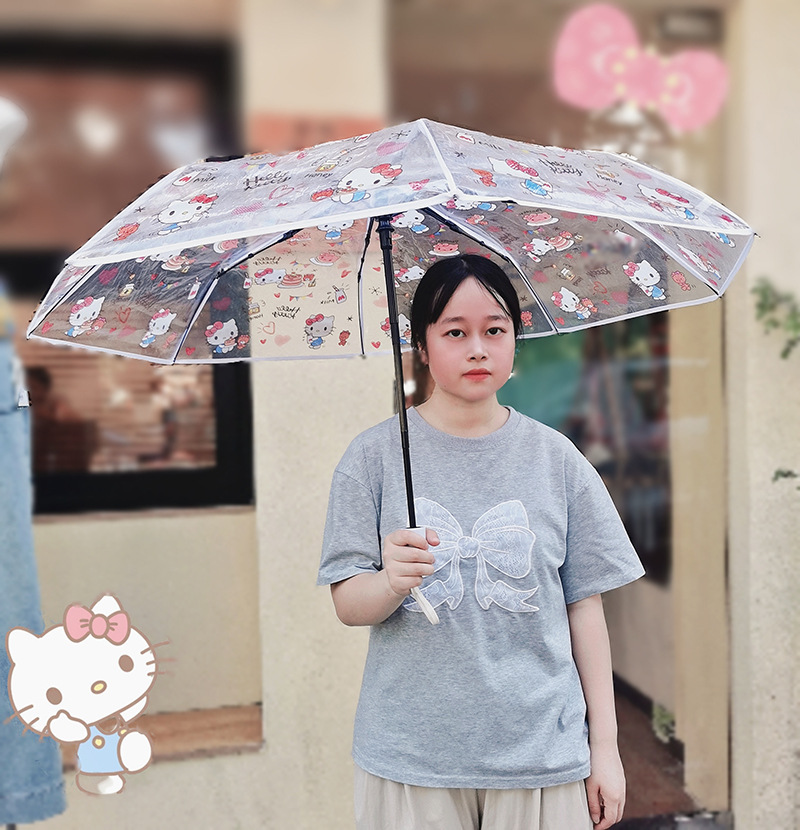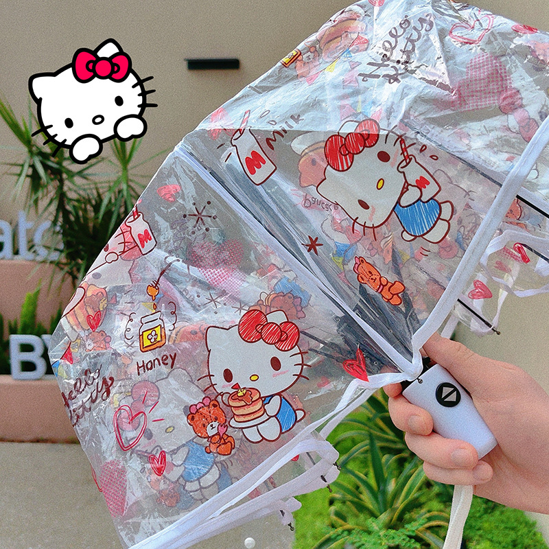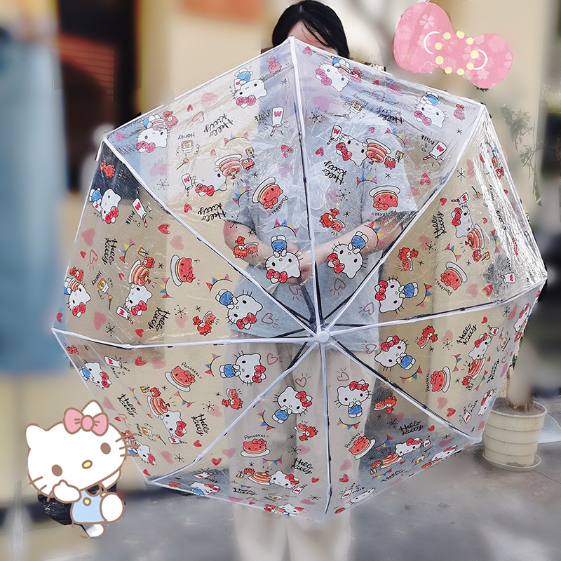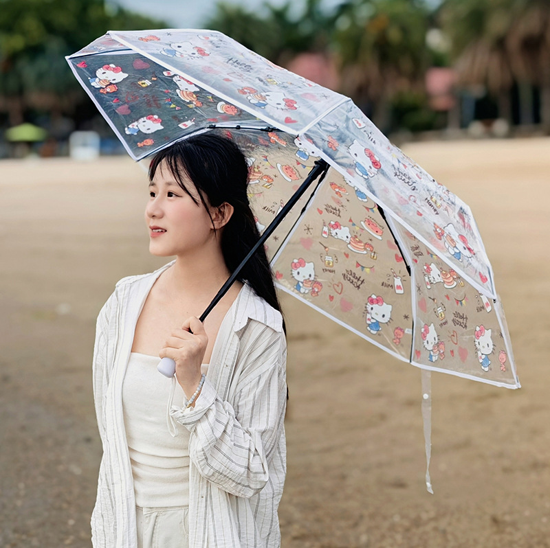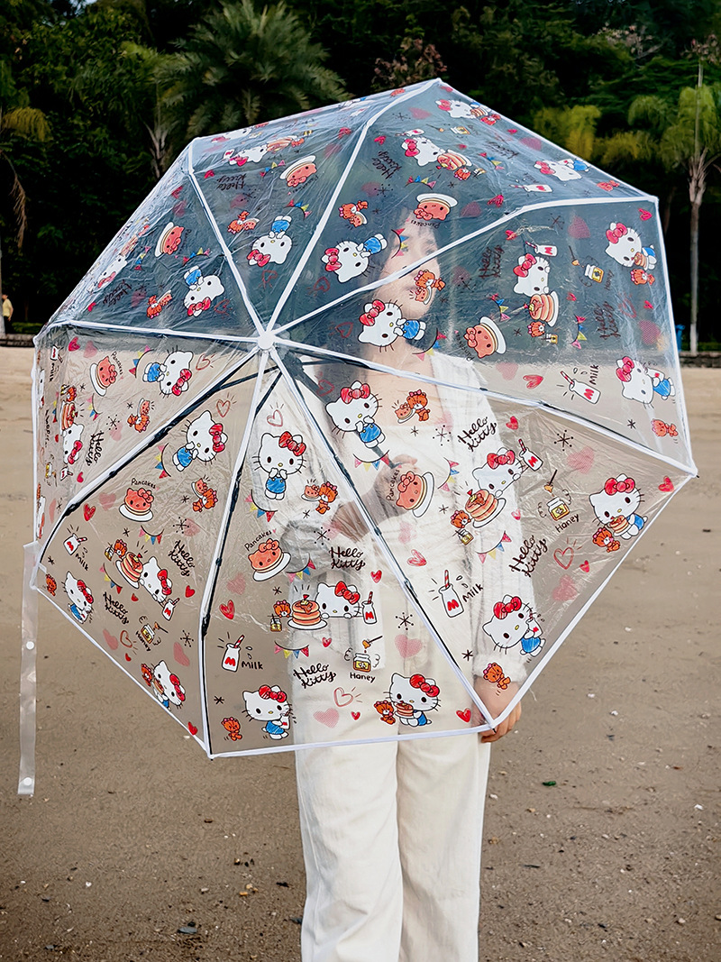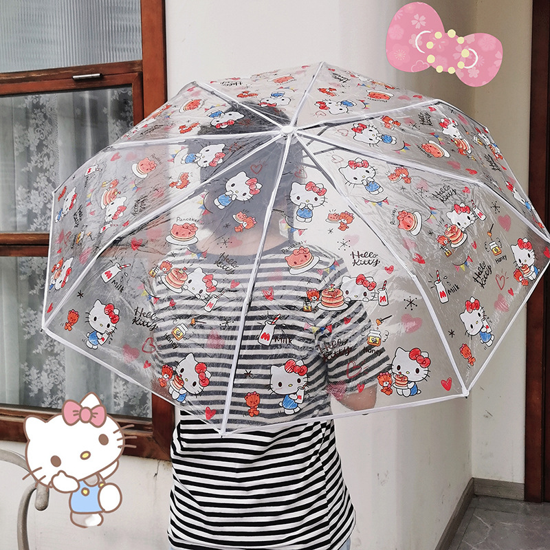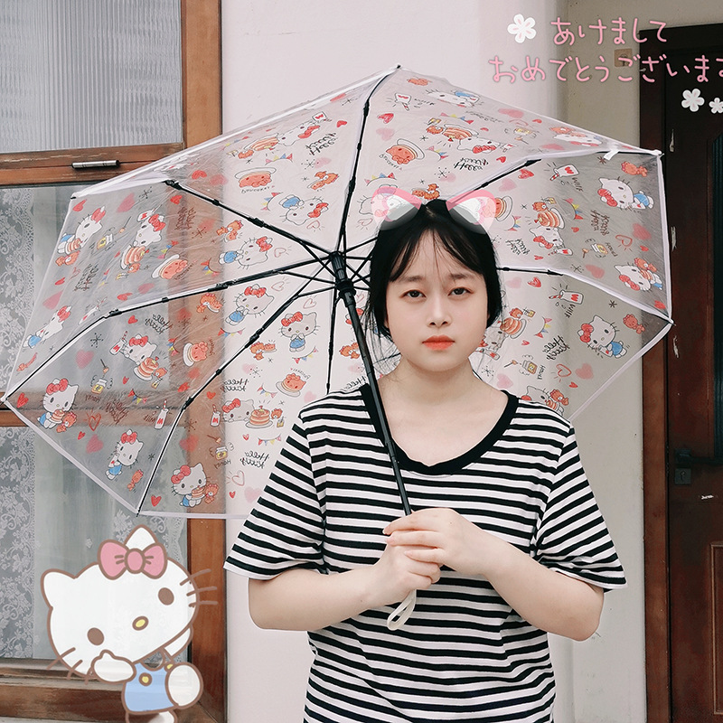 디저트 음료 kt 헬로 키티 꽃 투명 우산 일본 스타일 귀여운 만화 접는 우산 원피스 도매스토어 가기