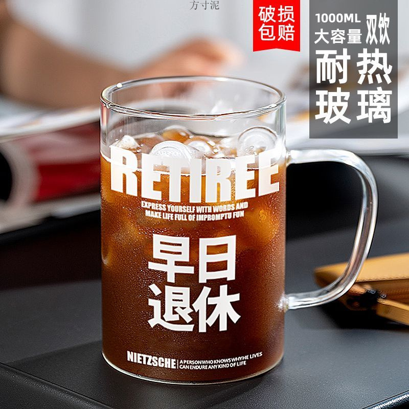 여름 유리 물 컵 대용량 1000ml 물병 휴대용 차 컵 남자 차 물 분리 차 컵 병 공장스토어 가기
