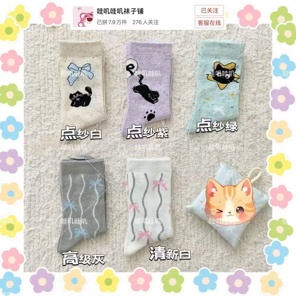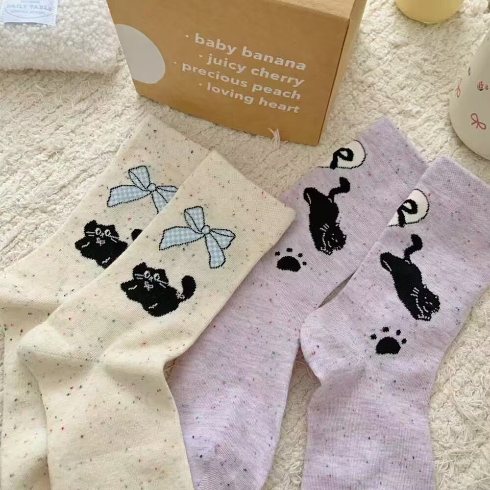 봄과 가을 일본 만화 귀여운 고양이 활 중간 튜브 양말 디자인 올 매치 도트 온 원사 양말 여성 신제품스토어 가기
