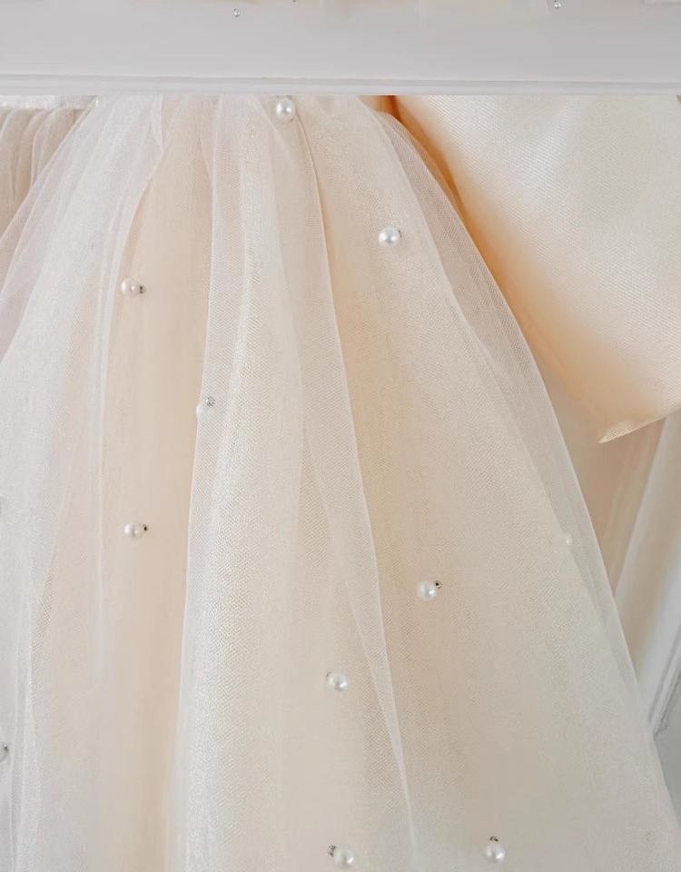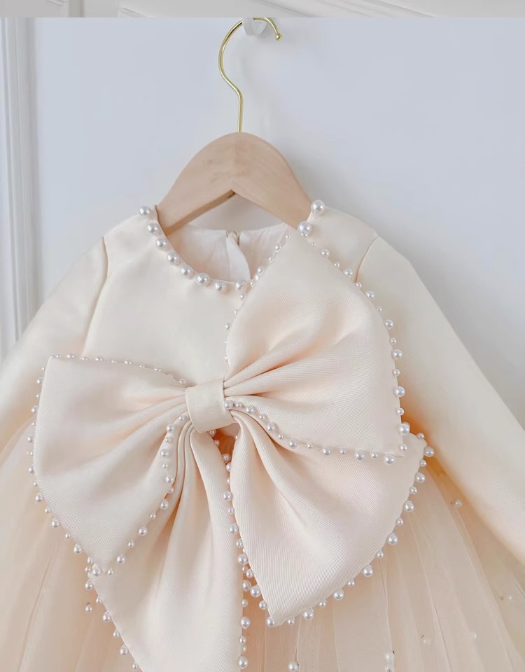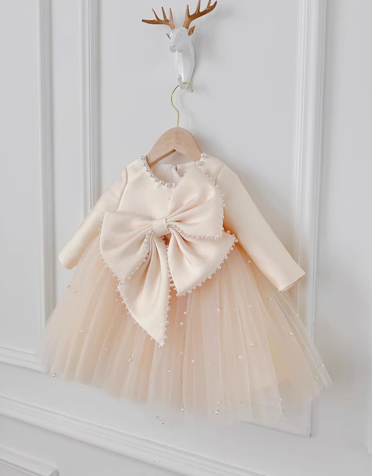 어린이 긴팔 원피스 2024 새 아기 생일 공주 한국 스타일 큰 활 진주 소녀 푹신한 선박 원피스스토어 가기