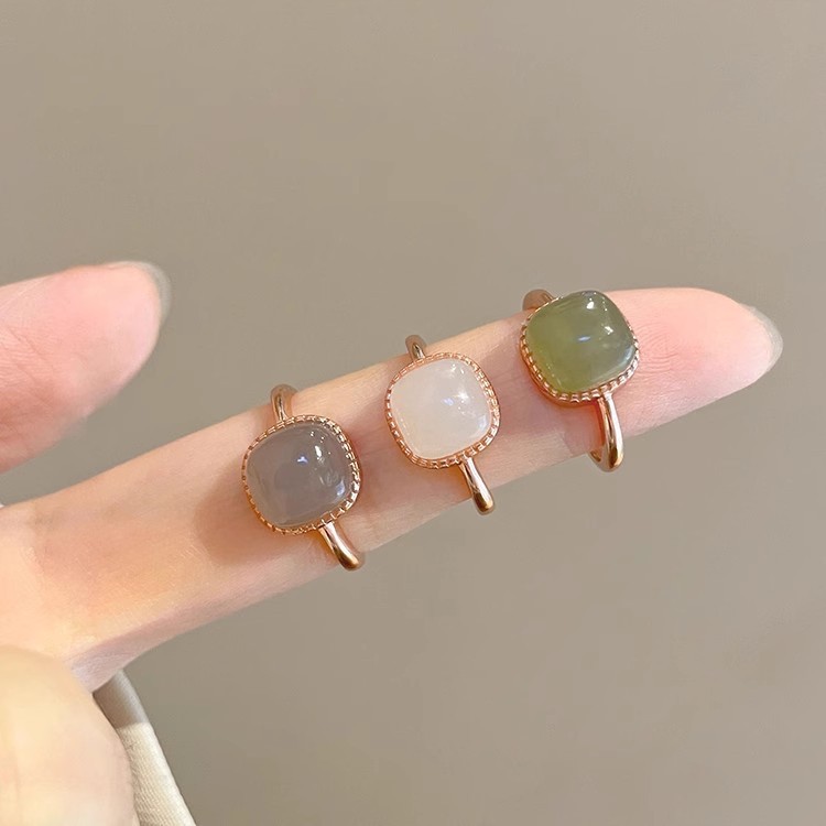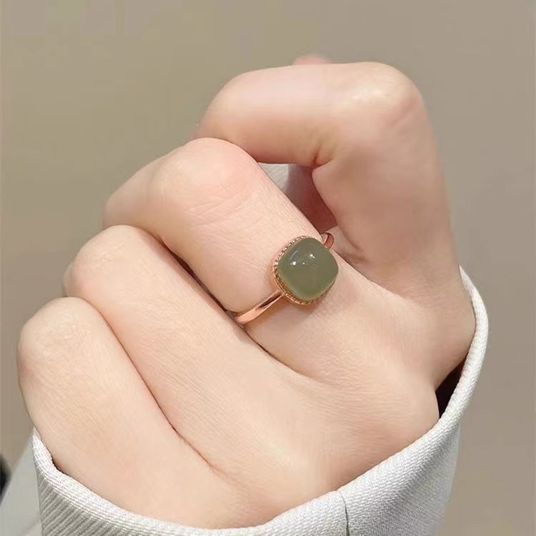 일본과 한국의 모조 Hetian 옥 작은 사각형 설탕 반지 여성 흰색 옥 반지 틈새 디자인 감각 2024 새로운 트렌드