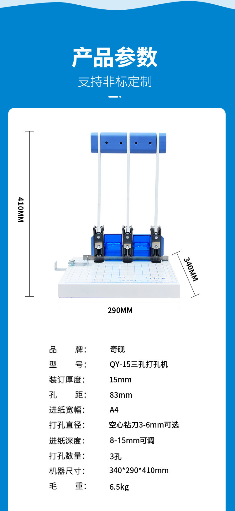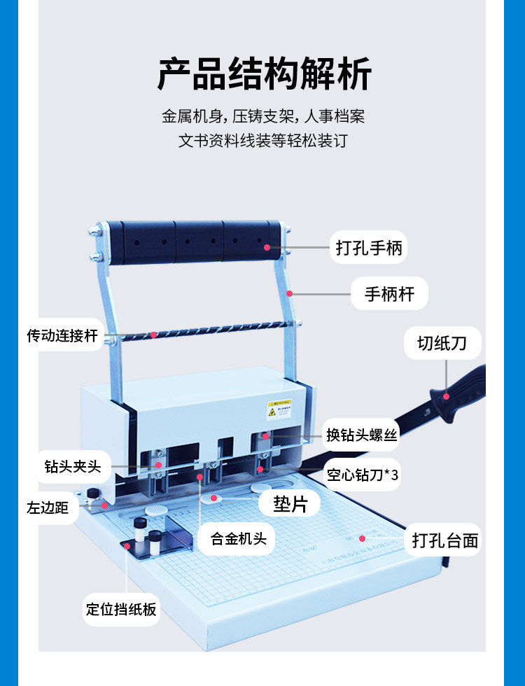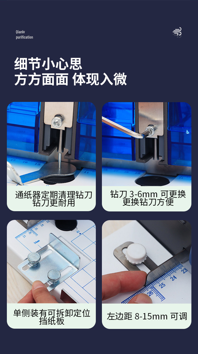 Qi Yan Qi Yan QY-15 3 홀 펀칭 기계 A4 간부 인사 파일 바인딩 기계 GB 마진 조정 가능한 배달 패드
