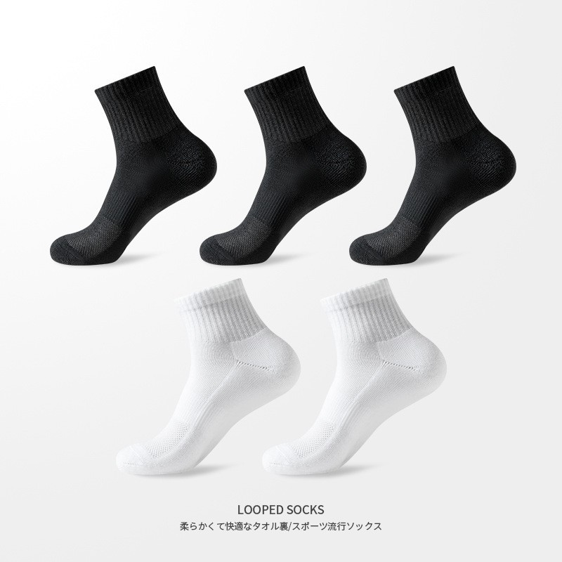 • 0282 타월지 블랙 앤 화이트 스포츠 양말
