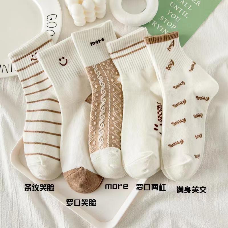 주지 양말 공장 가을 중목 여성 양말 중고급 롱 양말 여성용 트렌디 양말 스마일 양말 도매 제조업체 남성용
