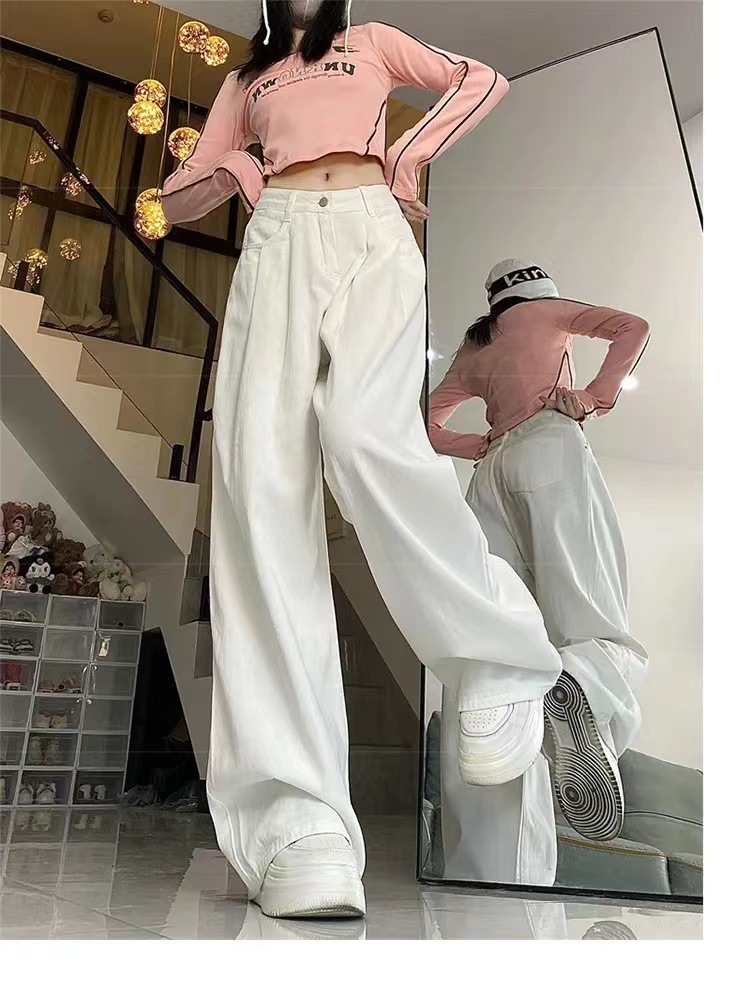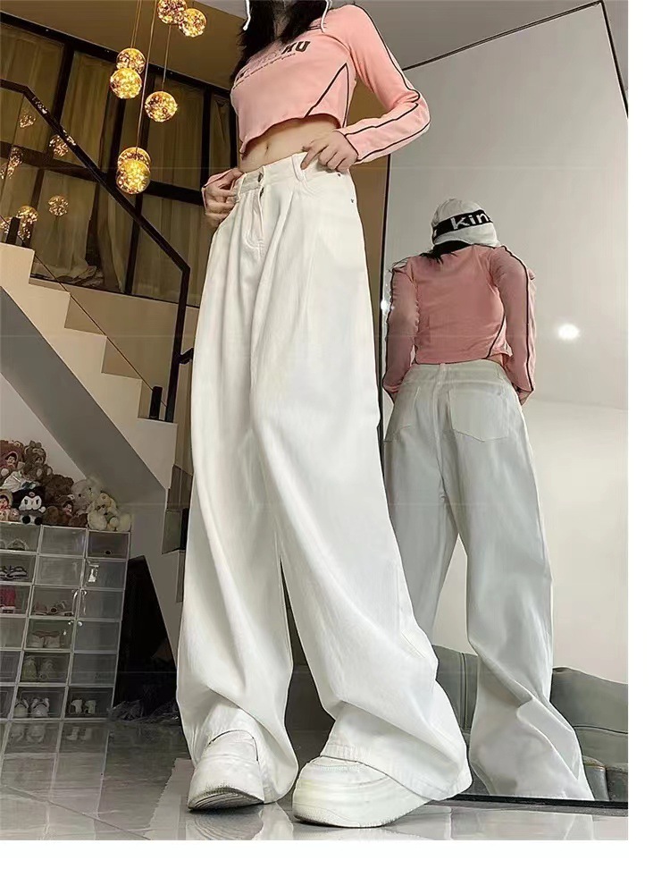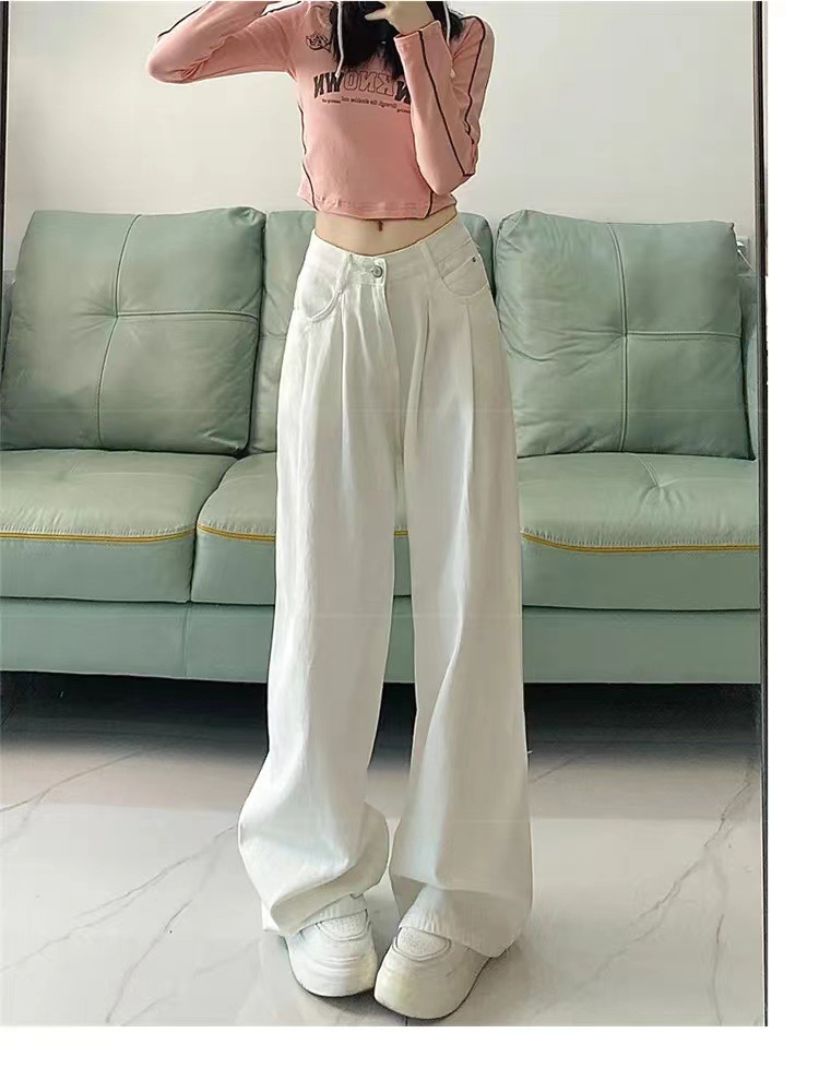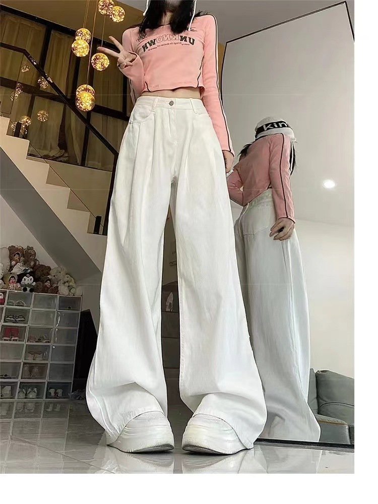 흰색 주름 넓은 다리 청바지 여성의 가을 얇은 높은 허리 느슨한 슬리밍 플러스 사이즈 통통녀 스트레이트 튜브스토어 가기