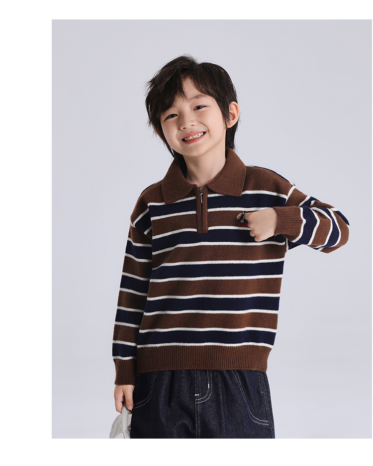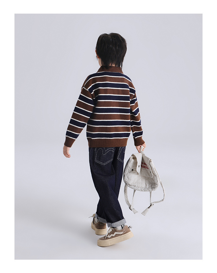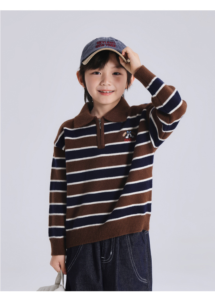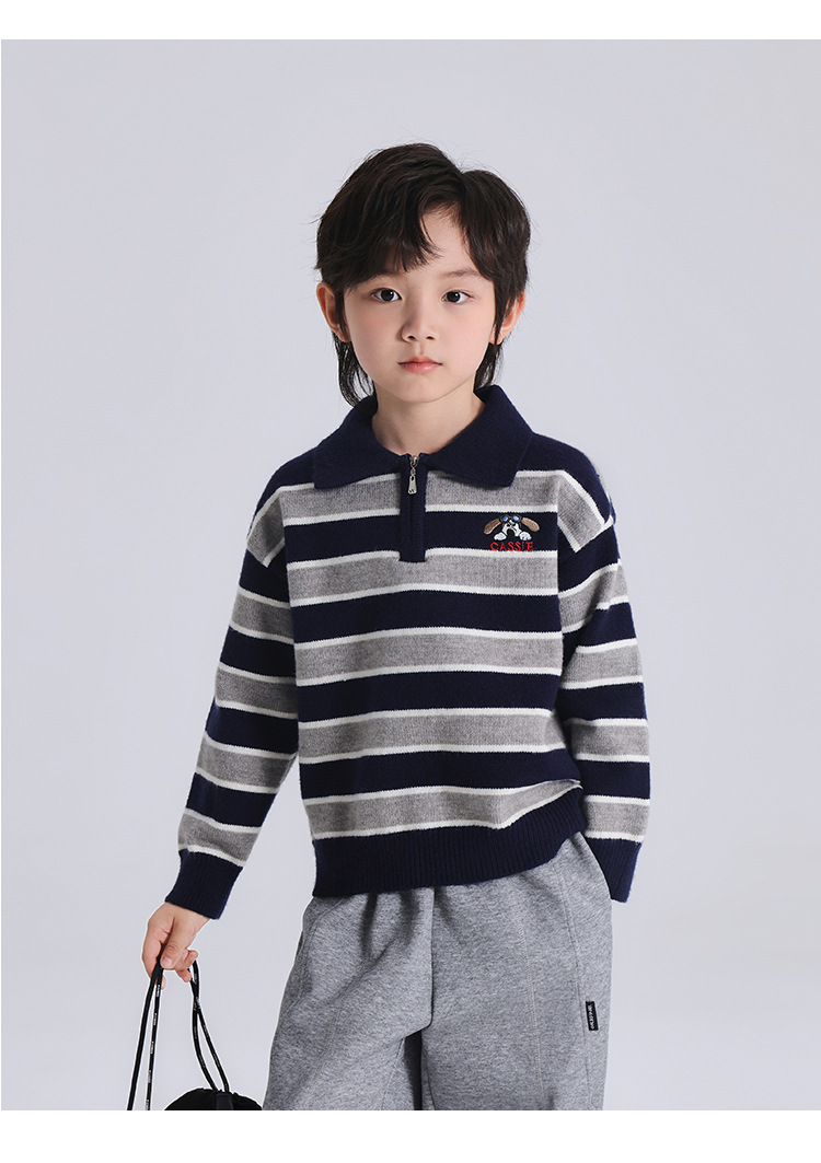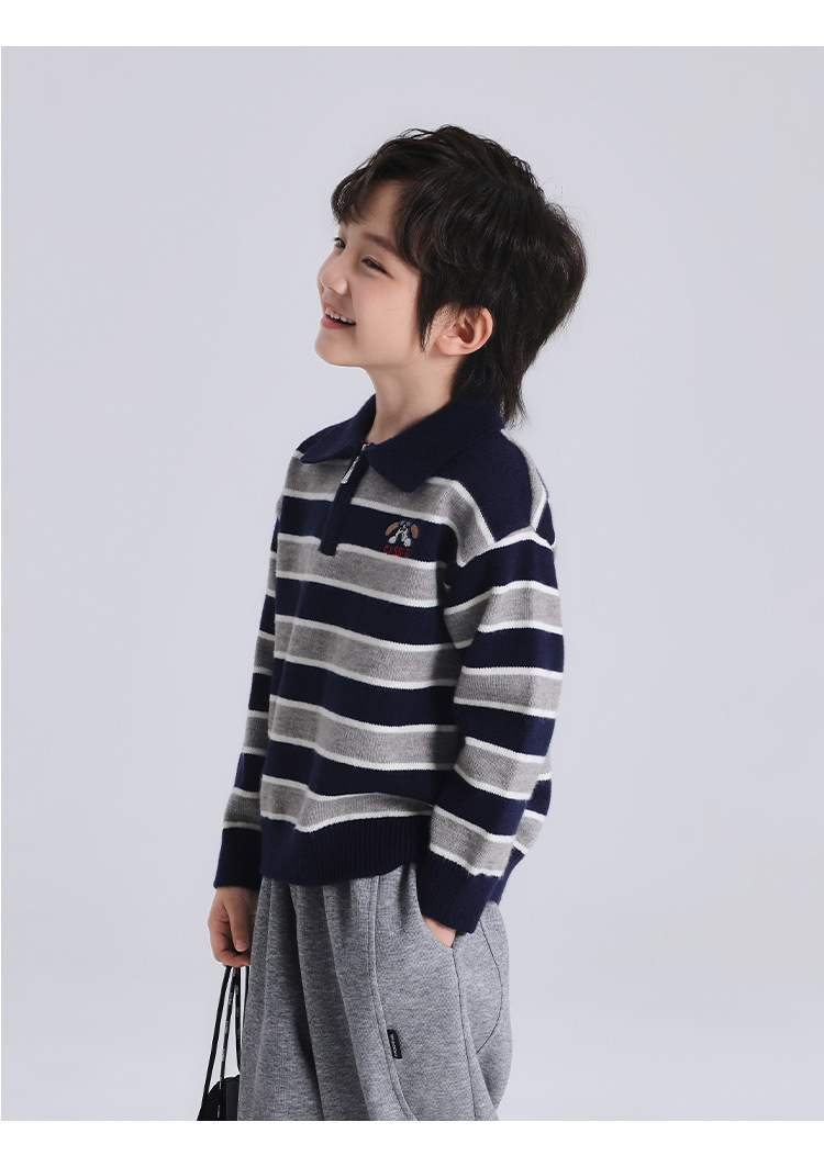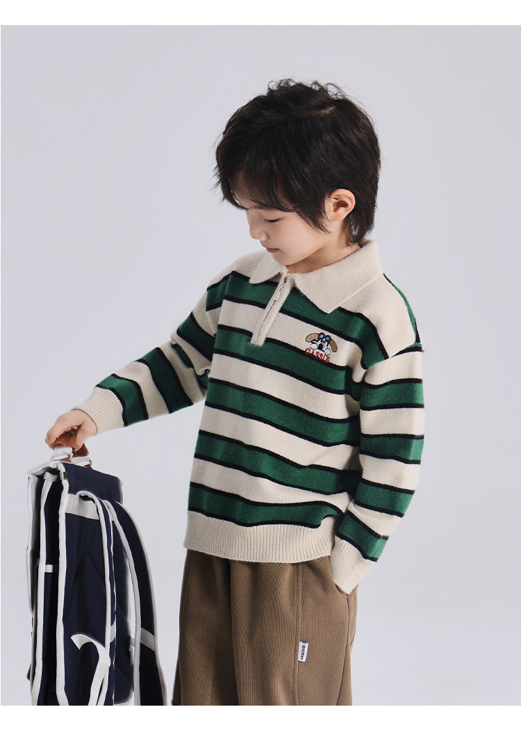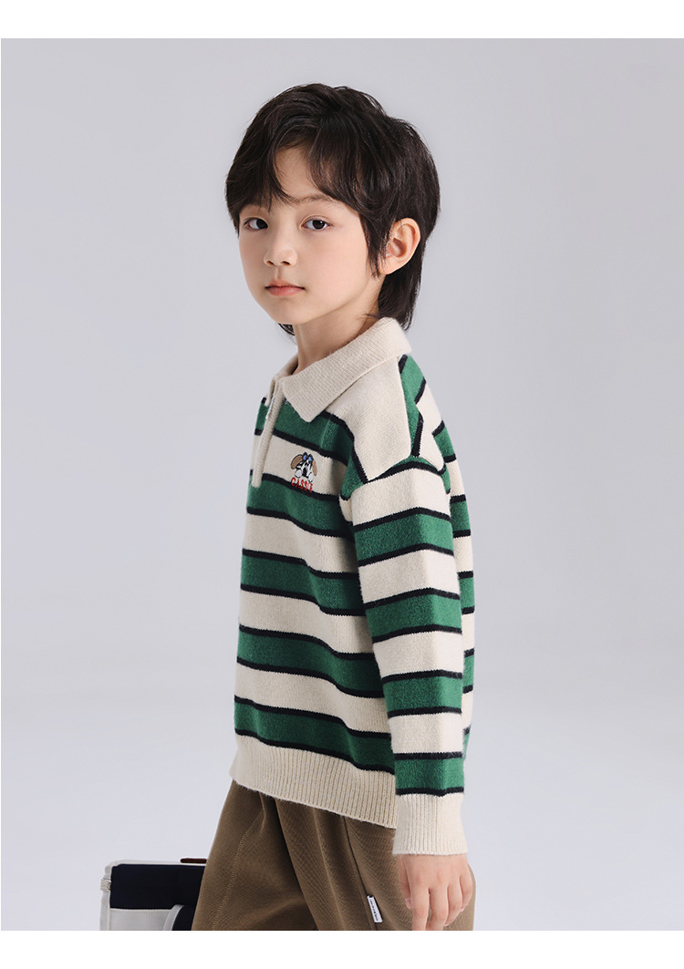 푸딩 하루 소년 2024 가을 새 어린이 올 매치 웨스턴 스타일 옷깃 스트라이프 스웨터 미들 큰 어린이 니트웨어