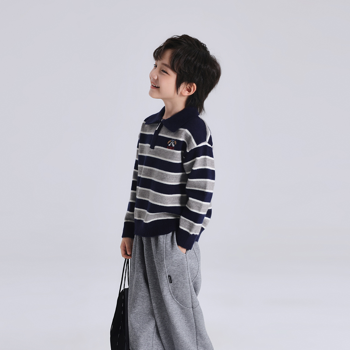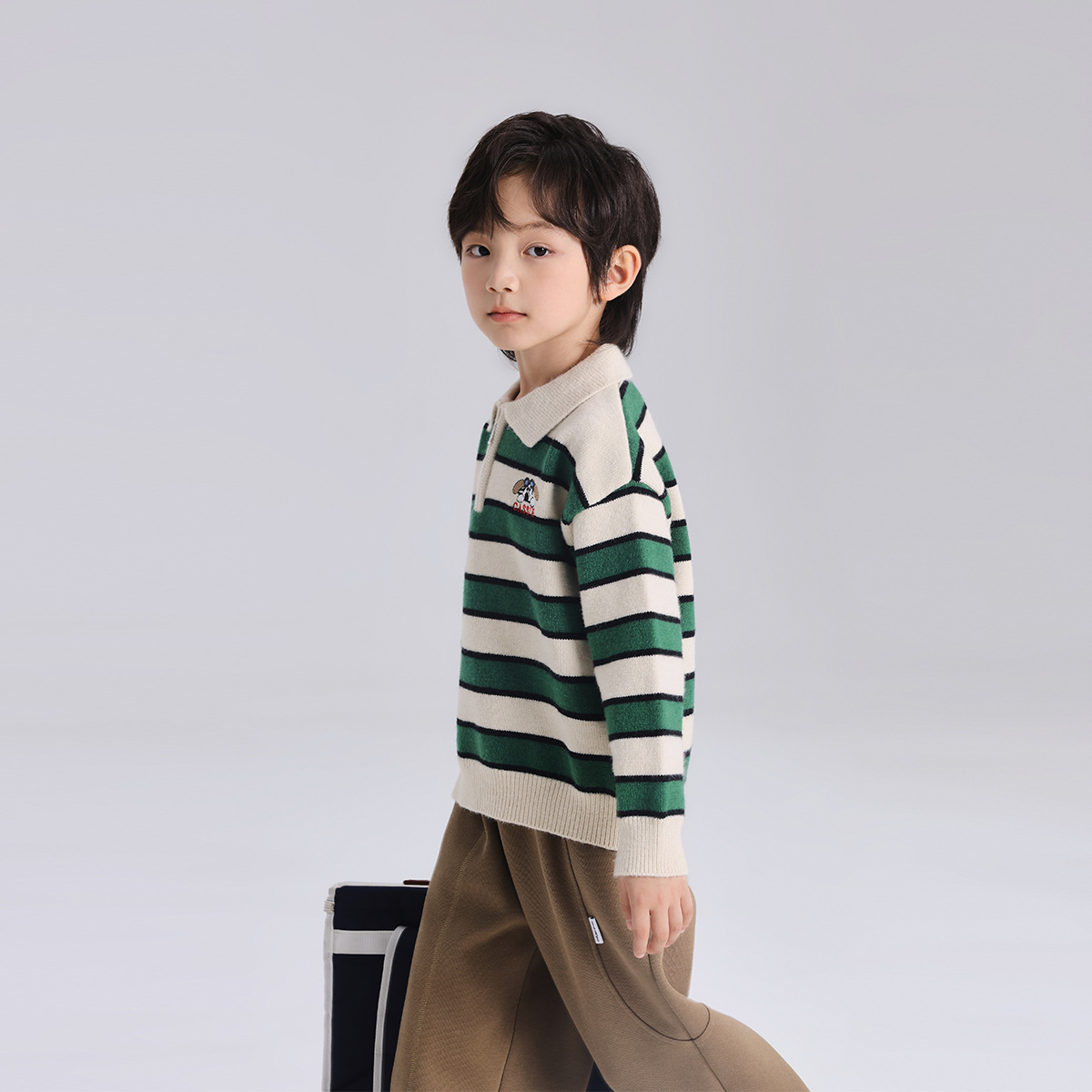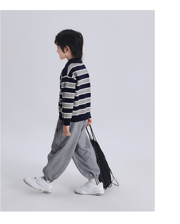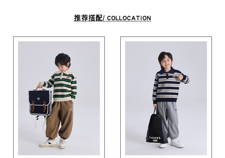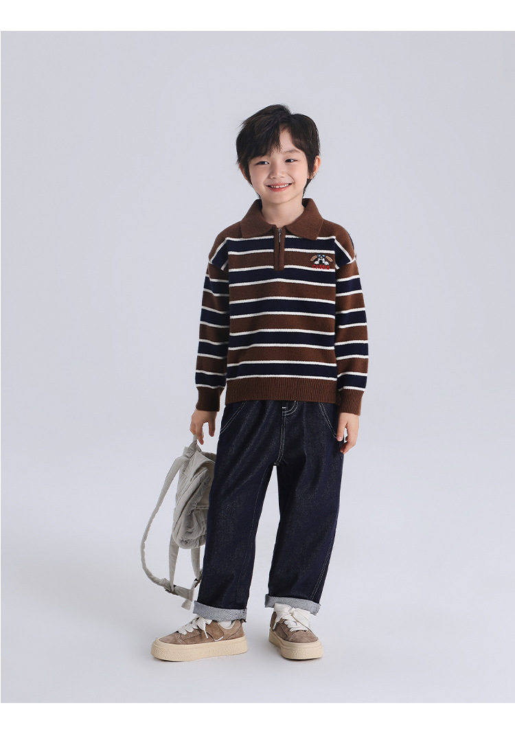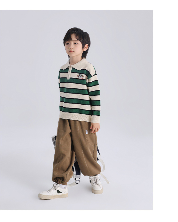 푸딩 하루 소년 2024 가을 새 어린이 올 매치 웨스턴 스타일 옷깃 스트라이프 스웨터 미들 큰 어린이 니트웨어
