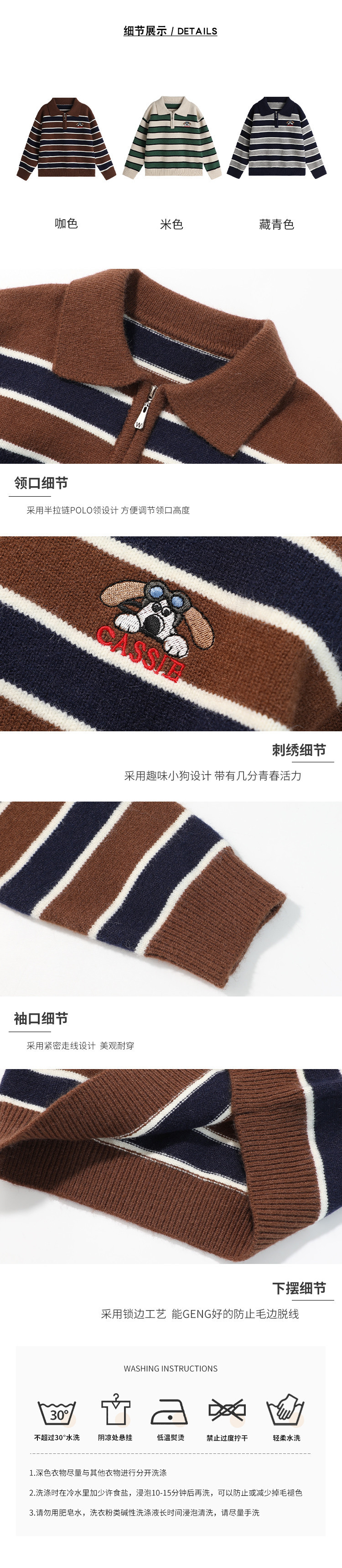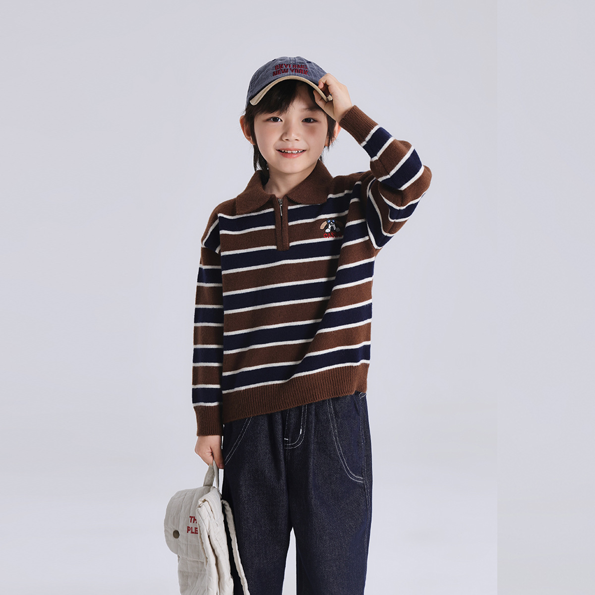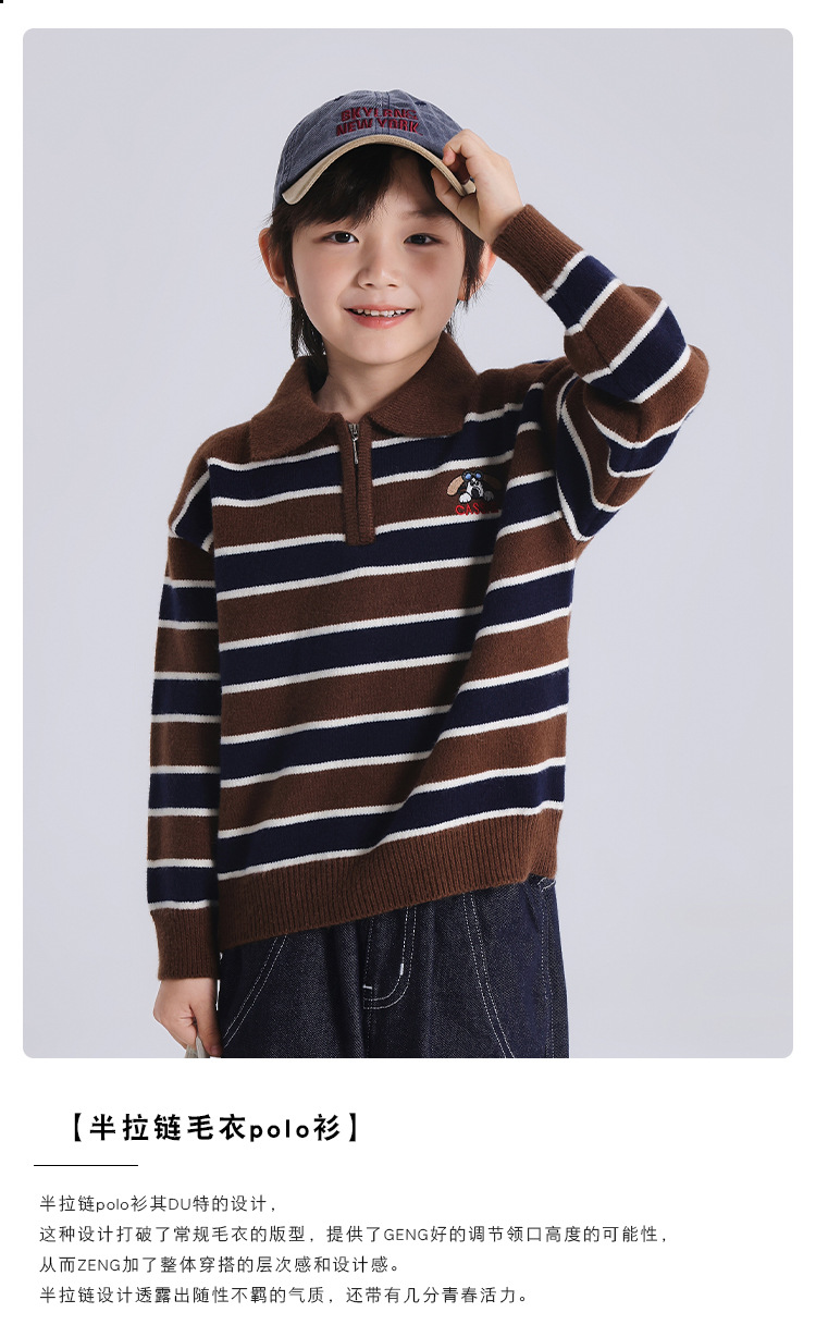 푸딩 하루 소년 2024 가을 새 어린이 올 매치 웨스턴 스타일 옷깃 스트라이프 스웨터 미들 큰 어린이 니트웨어스토어 가기