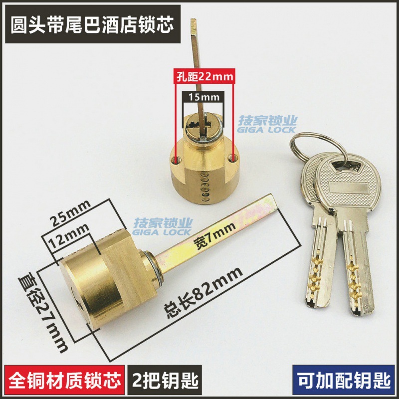• 꼬리가 있는 둥근 머리 호텔 잠금 실린더-35-50mm-범용 유형-열쇠 포함