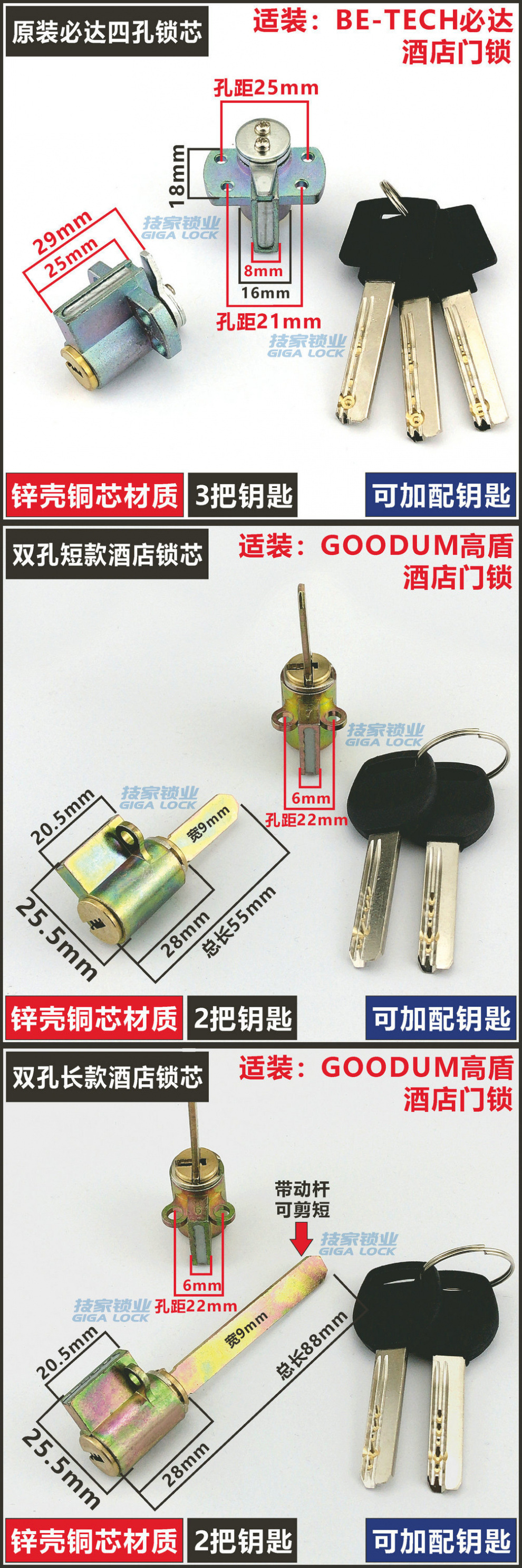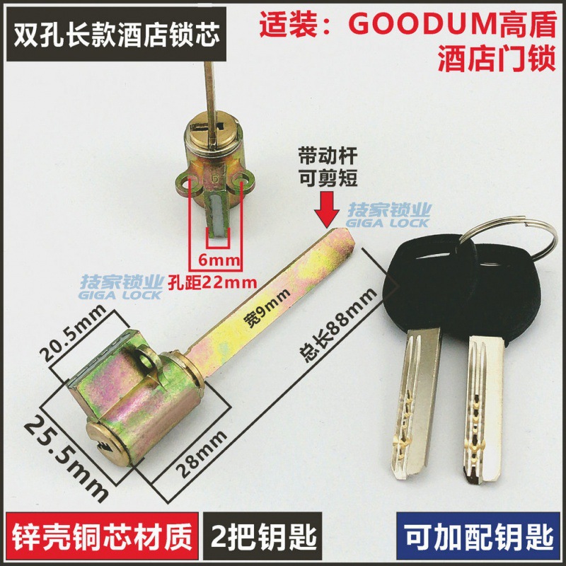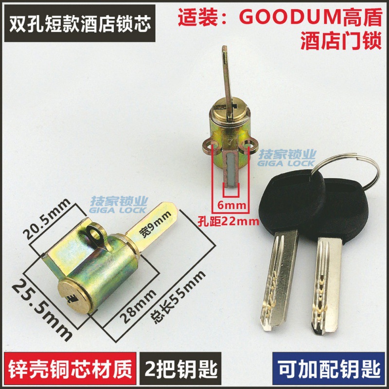 • 이중 구멍 짧은 호텔 잠금 실린더-35-50mm-범용 유형-열쇠 포함