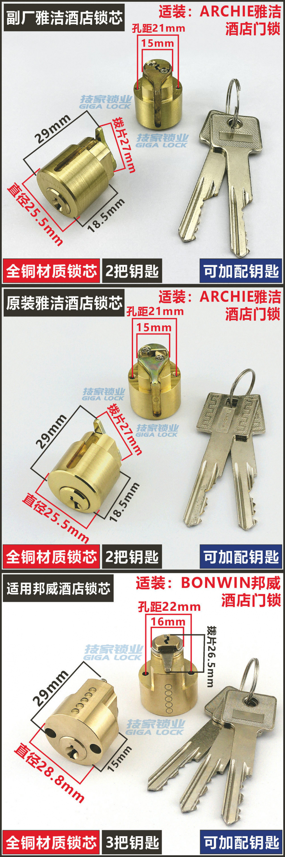 • 오리지널 Chuangjia 4홀 호텔 잠금 실린더-35-50mm-범용 유형-키 포함