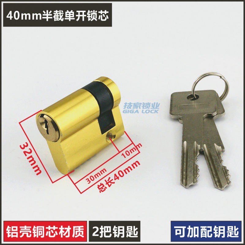 • 40mm 하프 싱글 잠금 실린더(알루미늄 쉘 구리 코어)-35-50mm-범용 유형-키 포함