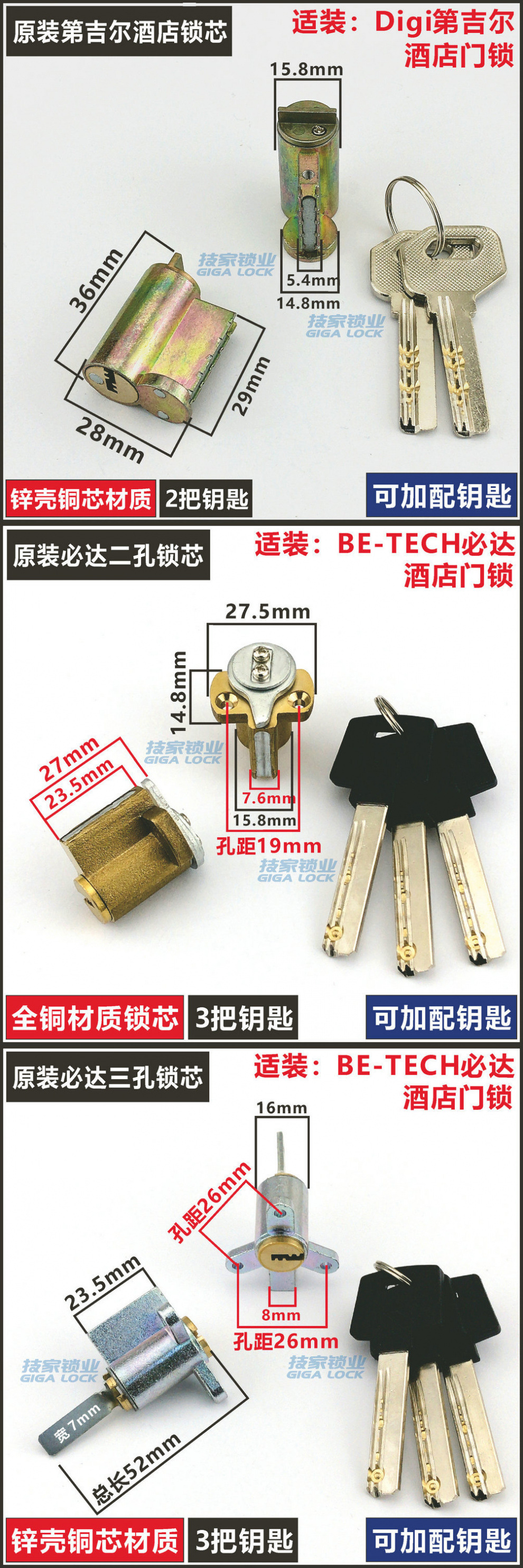 • 오리지널 디질 호텔 잠금 실린더-35-50mm-범용 유형-키 포함