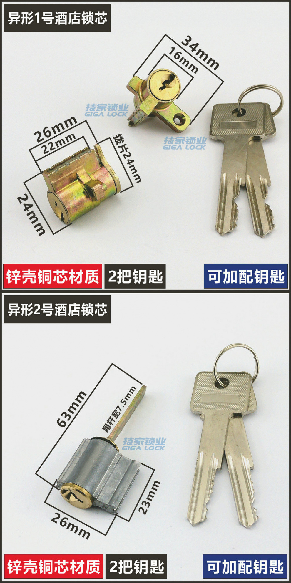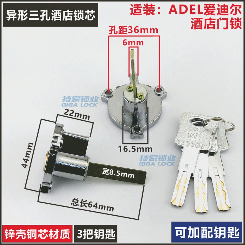 • 특수 형상 3구 호텔 잠금 실린더-35-50mm-범용 유형-열쇠 포함