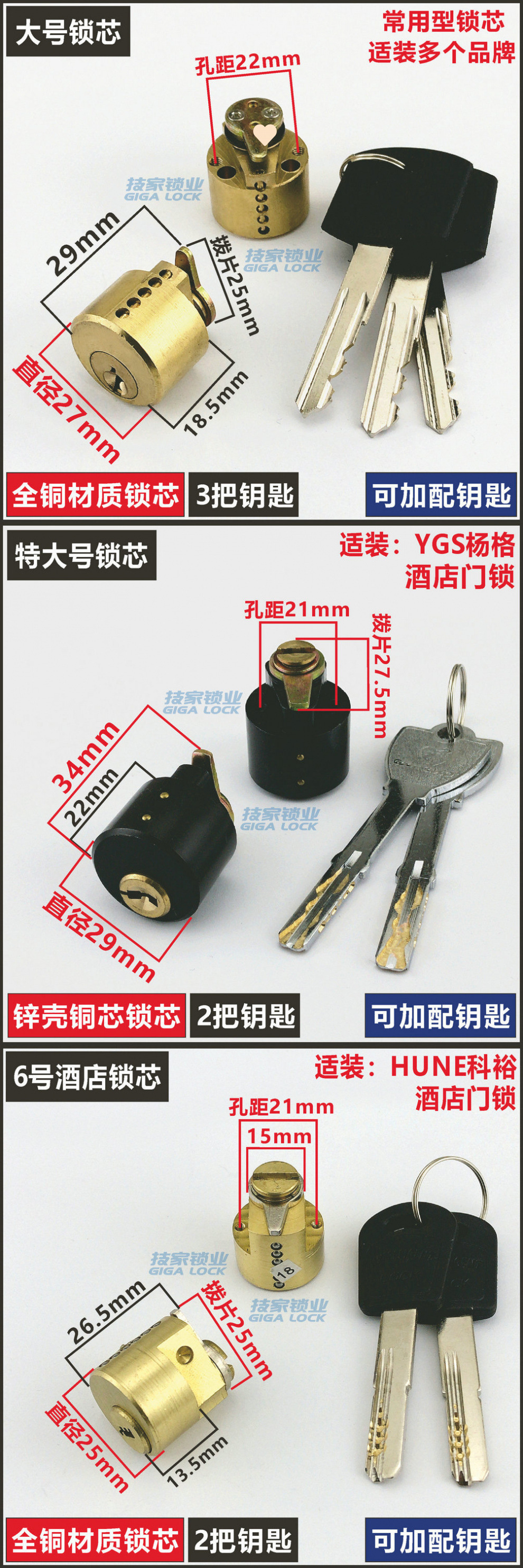 • 초대형 호텔 잠금 실린더-35-50mm-범용 유형-열쇠 포함