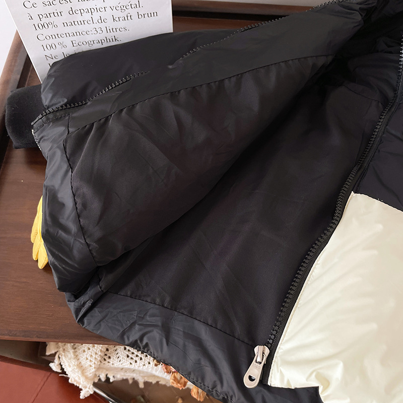 【现货】儿童羽绒服2025冬季新韩版卡拼色毛领连帽90白鸭绒羽绒服