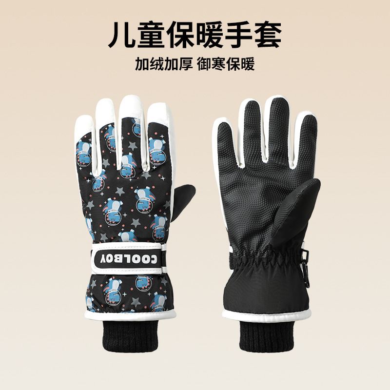 어린이 스키 장갑, 여자 아기용, 귀엽고 따뜻하며 벨벳 소재, 방수 및 두꺼운, 4-8세 남아용 겨울 눈놀이 장갑
