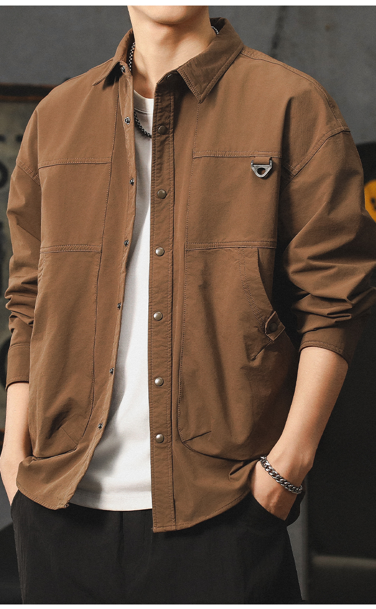 Maillard 작업복 남성용 긴팔 셔츠 봄, 가을 2024 새로운 트렌디 브랜드 미국 순수 코튼 루즈 남성 자켓