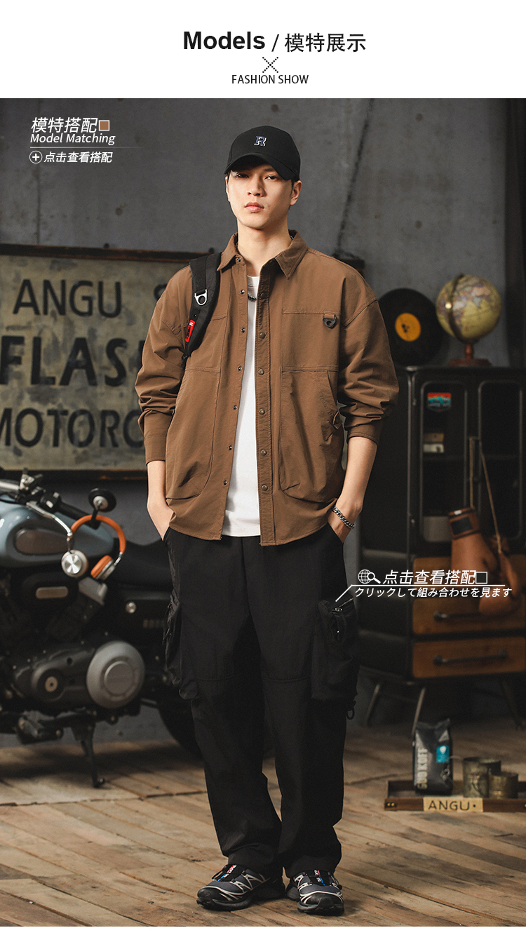 Maillard 작업복 남성용 긴팔 셔츠 봄, 가을 2024 새로운 트렌디 브랜드 미국 순수 코튼 루즈 남성 자켓스토어 가기