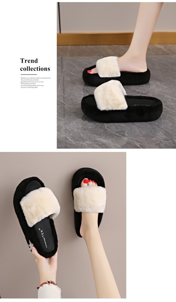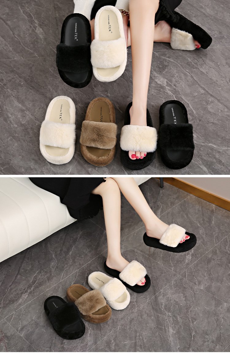 진짜 토끼 모피 두꺼운 밑창 마오 마오 슬리퍼 여성 2024 년 새로운 가을과 겨울 기모 마오 마오 신발, 배설물 느낌 슬리퍼 발걸음