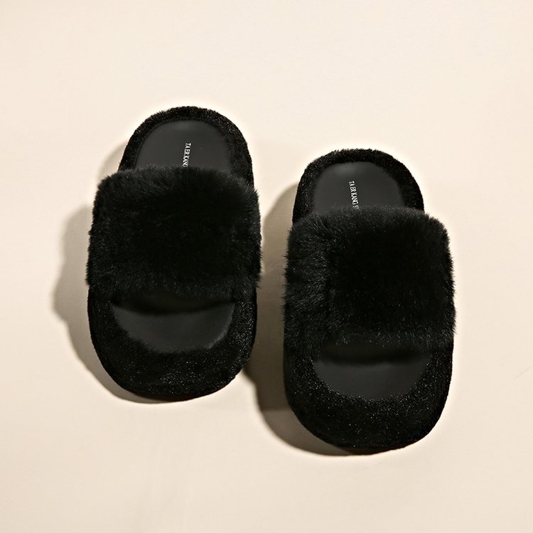 진짜 토끼 모피 두꺼운 밑창 마오 마오 슬리퍼 여성 2024 년 새로운 가을과 겨울 기모 마오 마오 신발, 배설물 느낌 슬리퍼 발걸음스토어 가기
