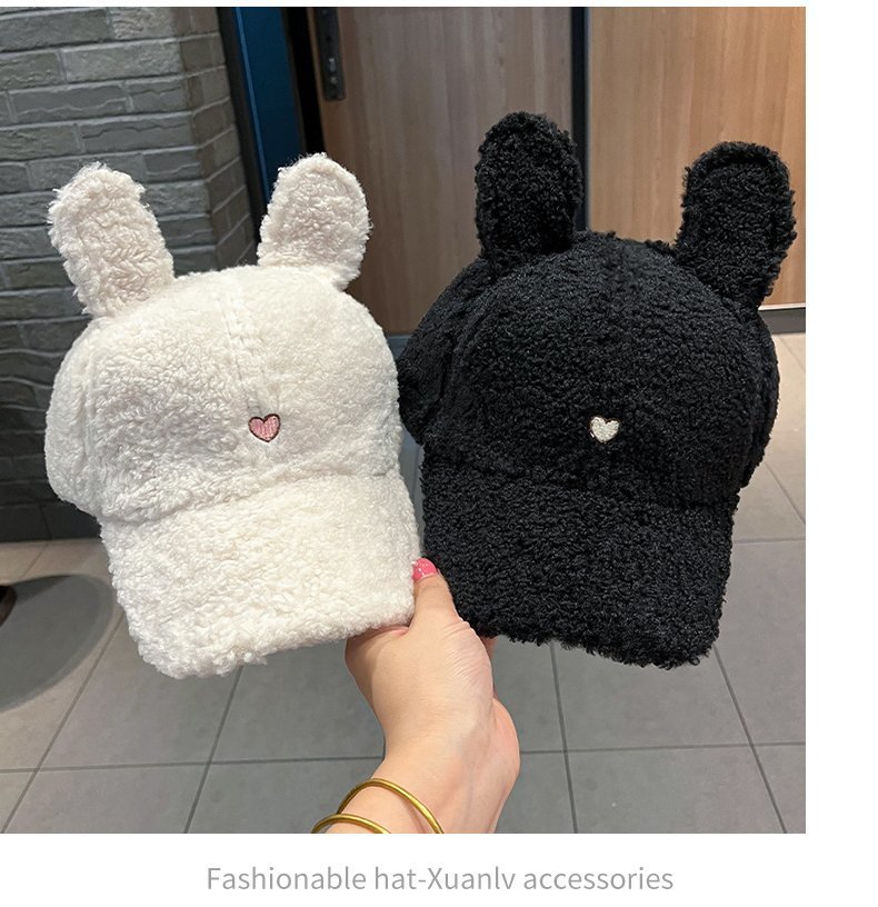 여자 봄 패션 귀여운 토끼 귀 봉제 야구 모자 봄 모든 경기 따뜻한 흰색 모자 여자 모자스토어 가기