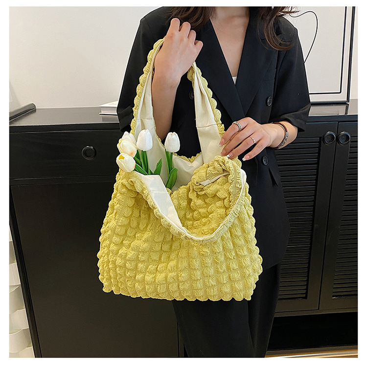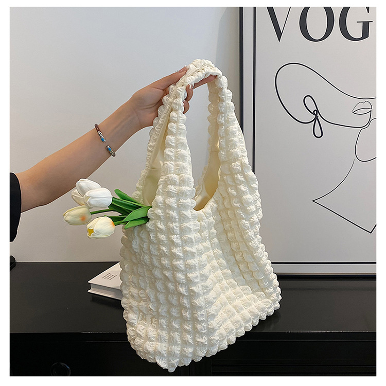 한국 인 소녀의 세련된 구름 퍼프 꽃 어깨 가방 여성의 2023 새로운 여름 캔버스 간단한 핸드백스토어 가기