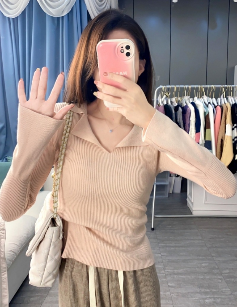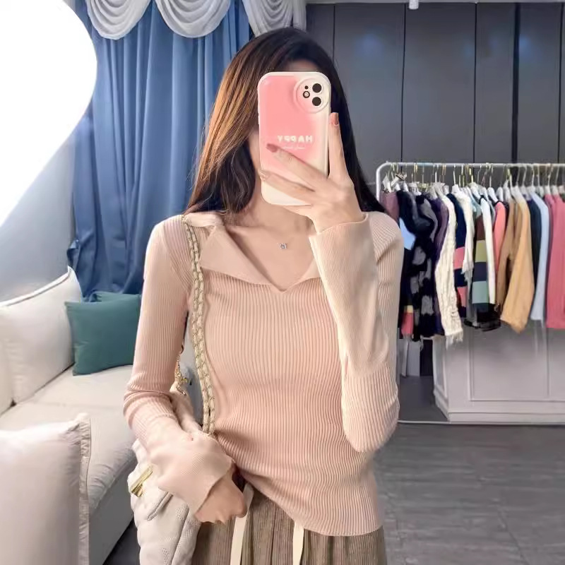 프렌치 스타일 니트웨어 가을 겨울 2025 신상 풀오버 스웨터 핑크 상의 초가을 외출용 여성용스토어 가기
