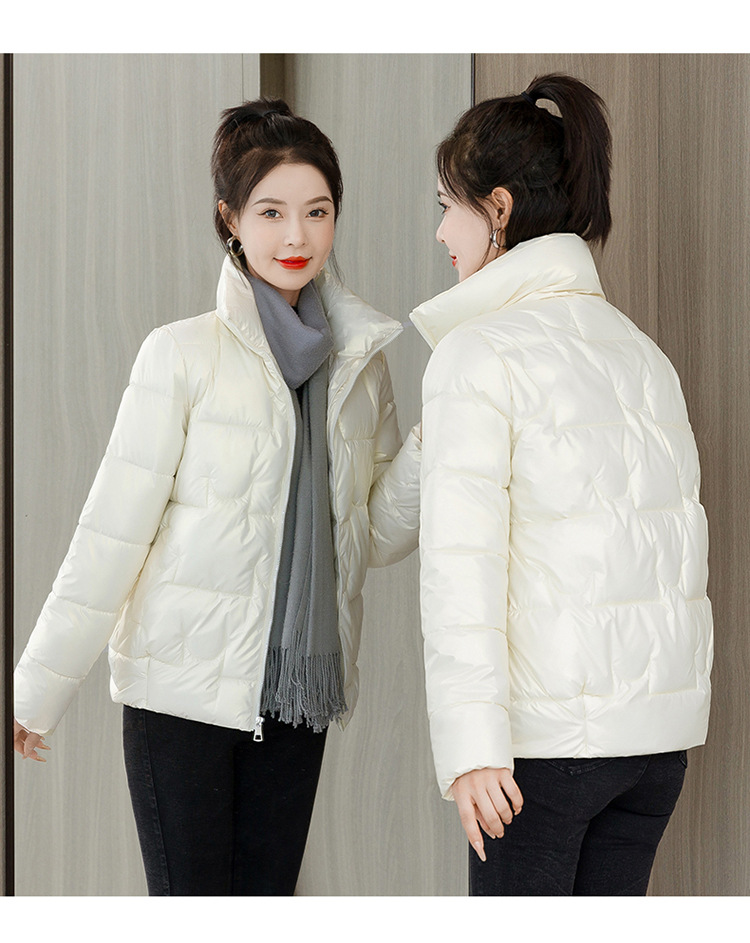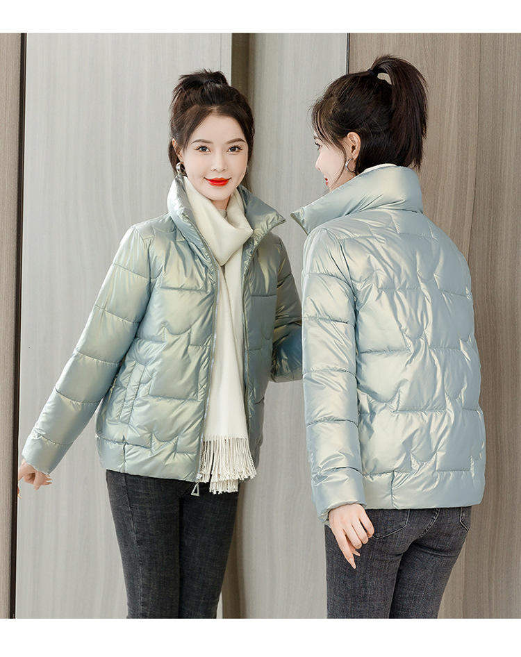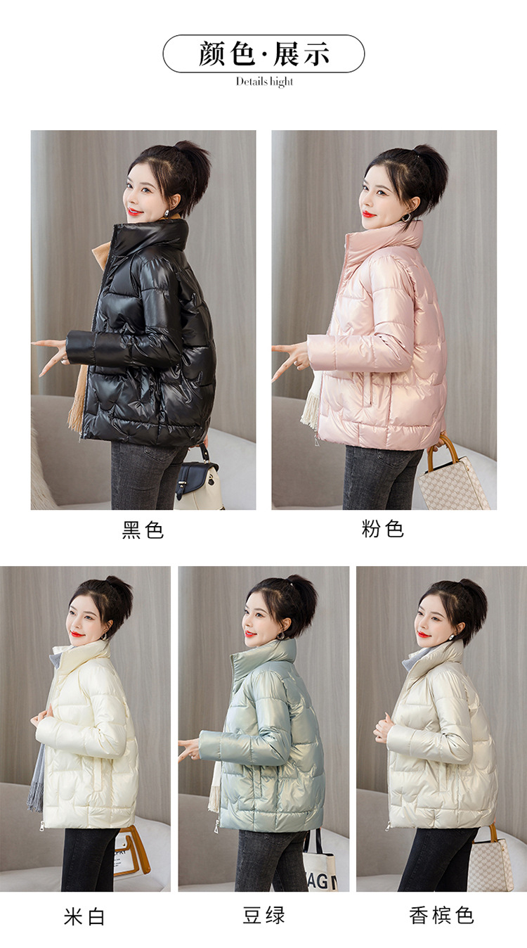 여성용 면옷 2025 신상품 세탁 불필요 광택 있는 스탠드 칼라 면재킷 두꺼운 한국 스타일 다운 면옷 짧은형 보온 재킷