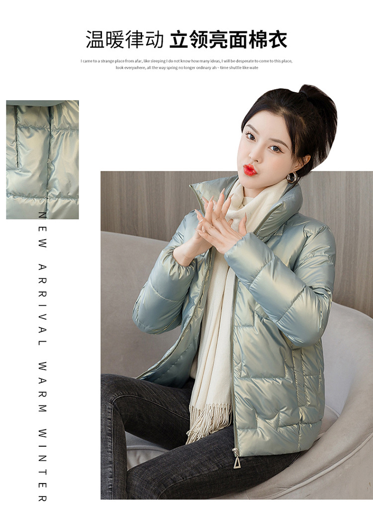 여성용 면옷 2025 신상품 세탁 불필요 광택 있는 스탠드 칼라 면재킷 두꺼운 한국 스타일 다운 면옷 짧은형 보온 재킷스토어 가기