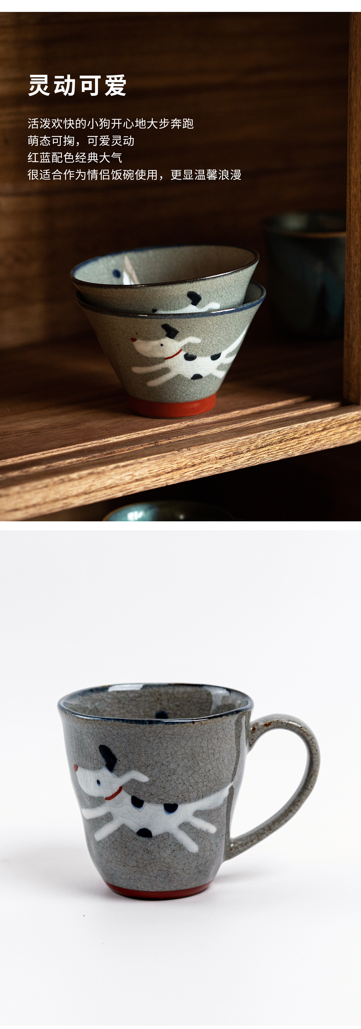 [공식 정품] 일본 수입 샹팡 가마 귀여운 개 파이팅 보울은 쌀그릇 세라믹 식기
