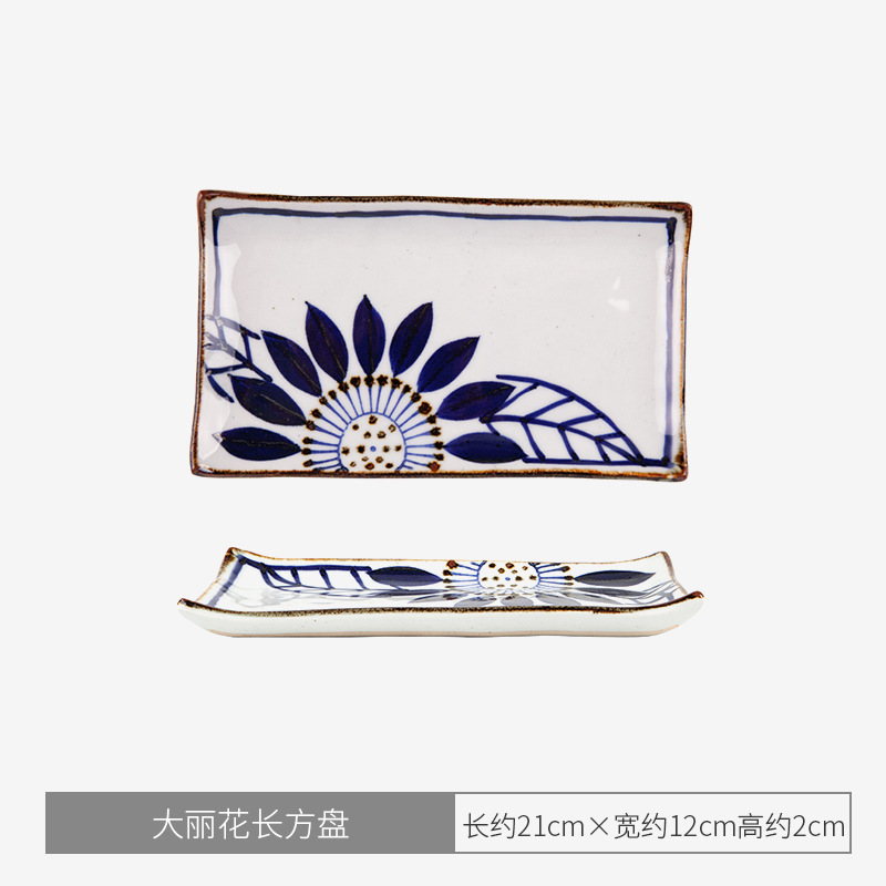 • 파란 꽃 직사각형 접시