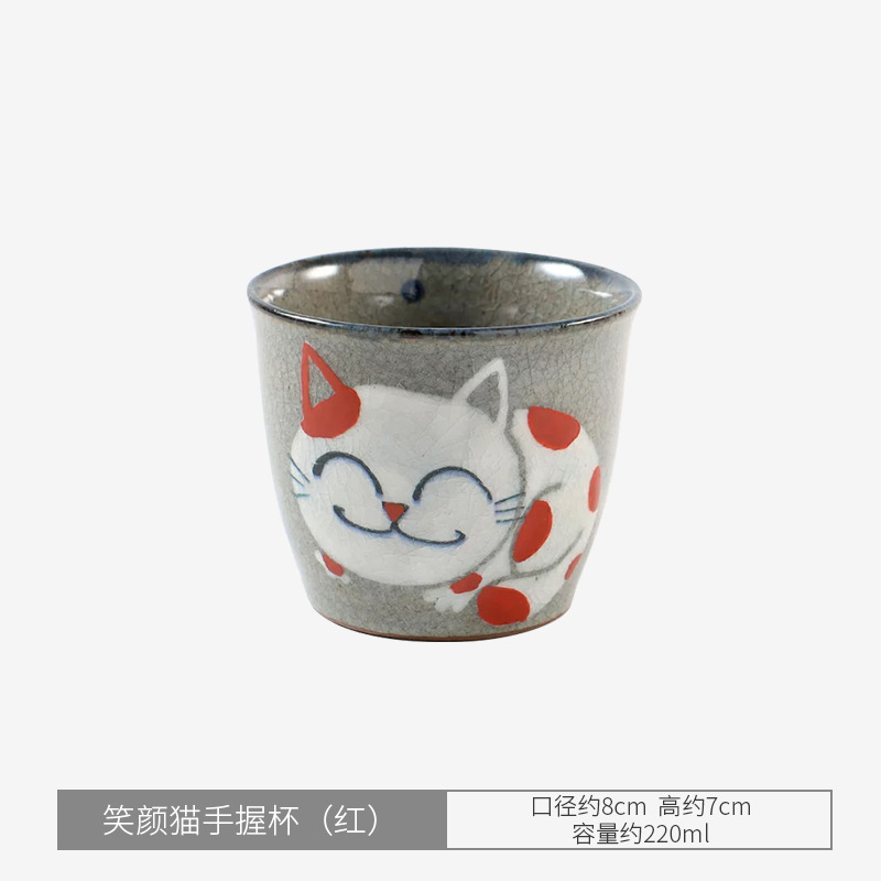 • 웃는 고양이가 컵을 들고 있다(빨간색)