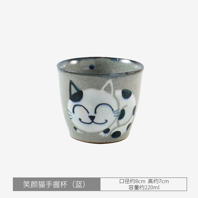 • 웃는 고양이가 컵을 잡고 있다(파란색)