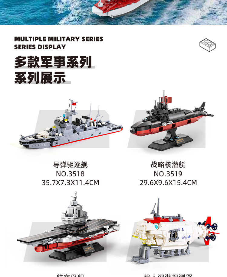 Wanger 작은 입자 건물 블록 소년 장난감 어린이 6-12 세 해군 파괴자 핵 잠수함 모델스토어 가기