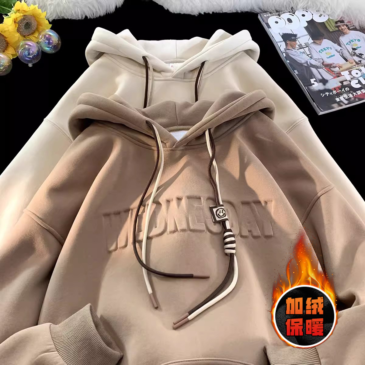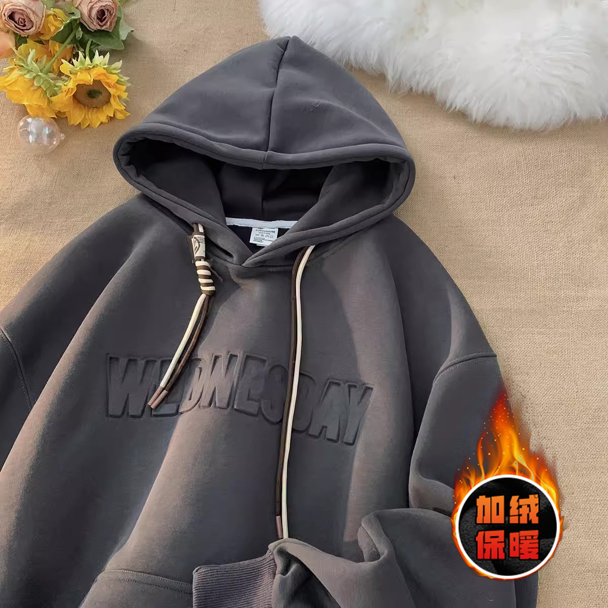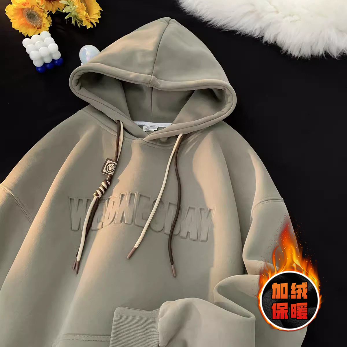 미국 무거운 스웨터 남성 봄과 가을 2024 새로운 가을 패션 브랜드 후드 기모 시티 보이 일본 코트