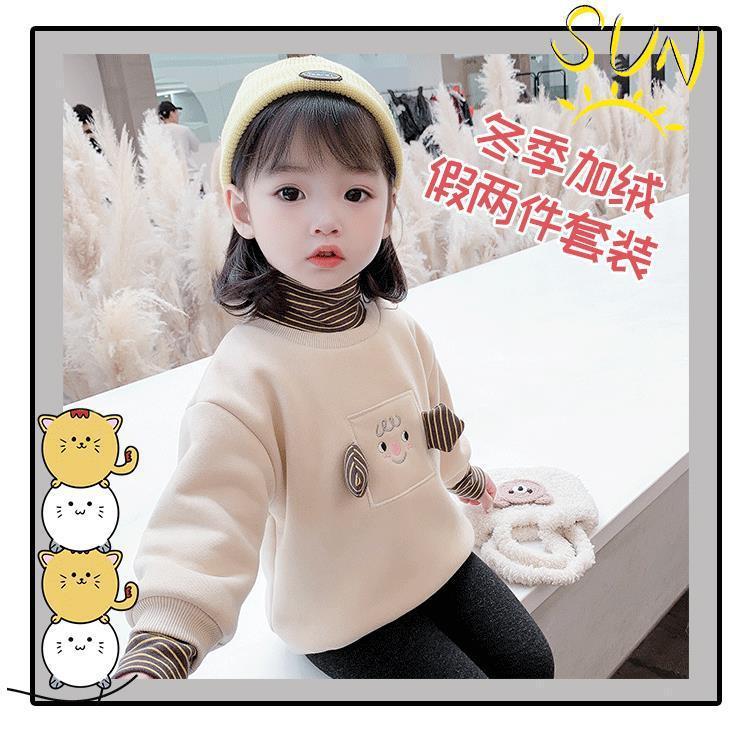 아기의 기모 두꺼운 스웨터 2024 뉴 보이즈 반 높이 칼라 보텀 셔츠 가을과 겨울 아기의 조수스토어 가기